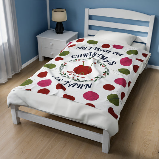 "All I Want for Christmas is Yarn" Lightweight Velveteen Blanket