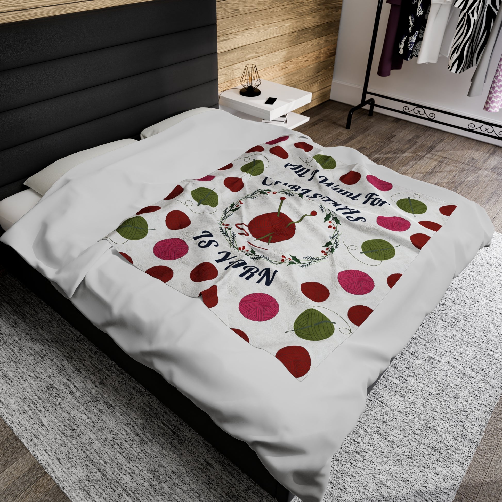 "All I Want for Christmas is Yarn" Lightweight Velveteen Blanket