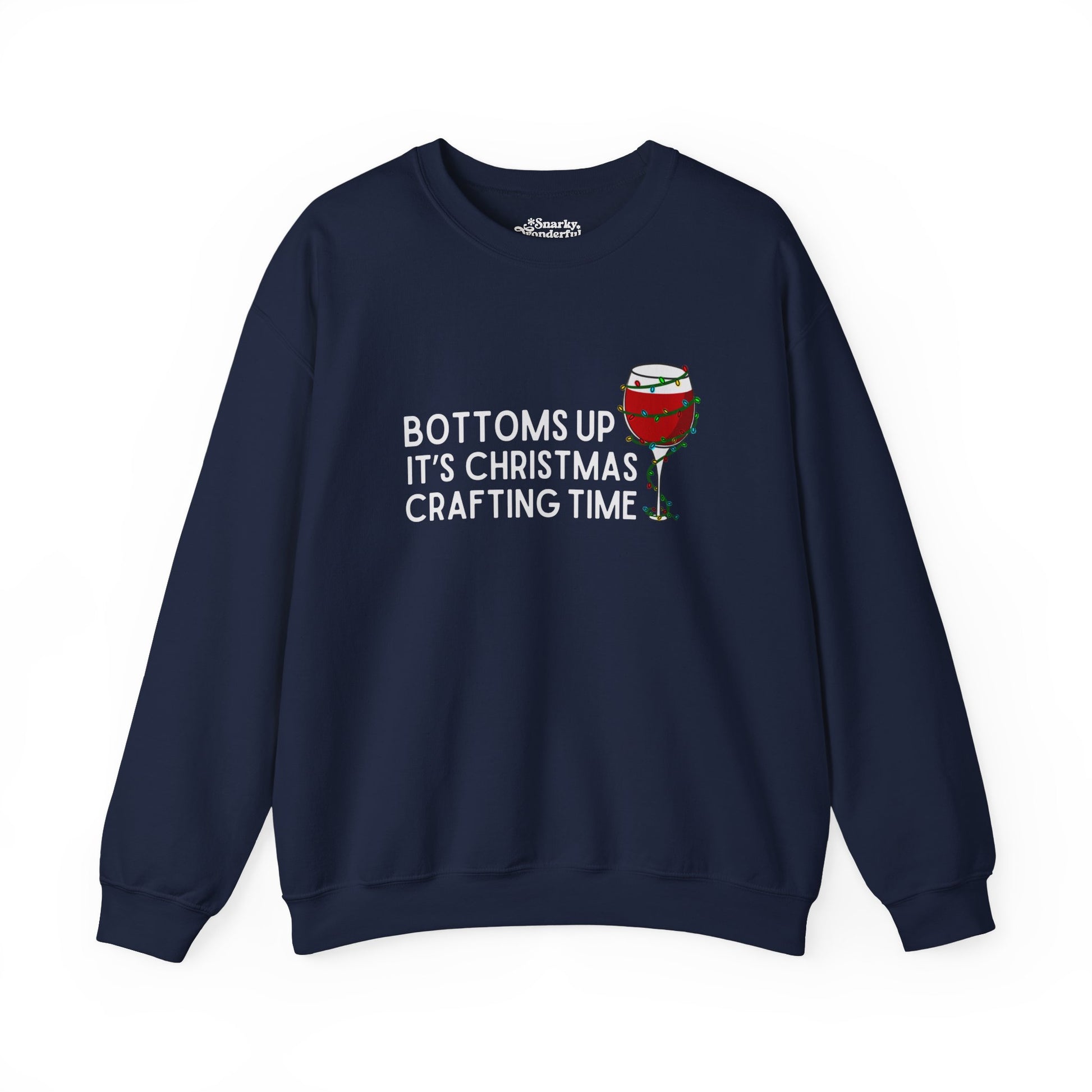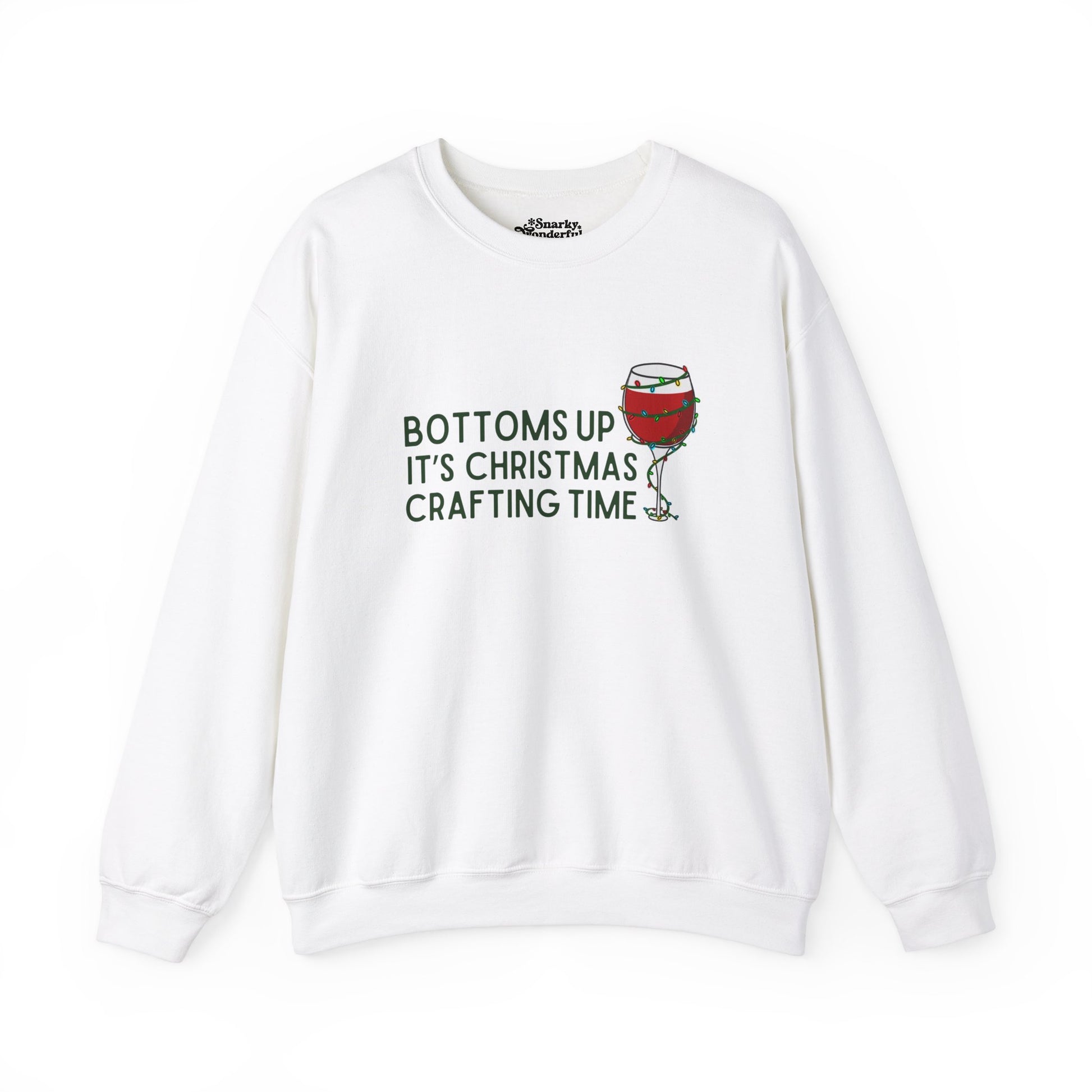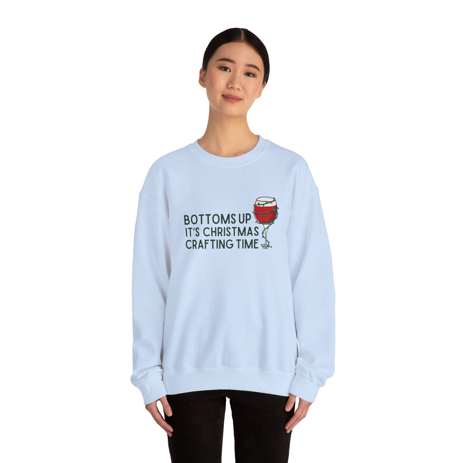 Cheers to the season of crafts and cocktails! This 'Bottoms Up, It's Christmas Crafting Time' sweatshirt is perfect for those who know that a little wine pairs perfectly with a hot glue gun.