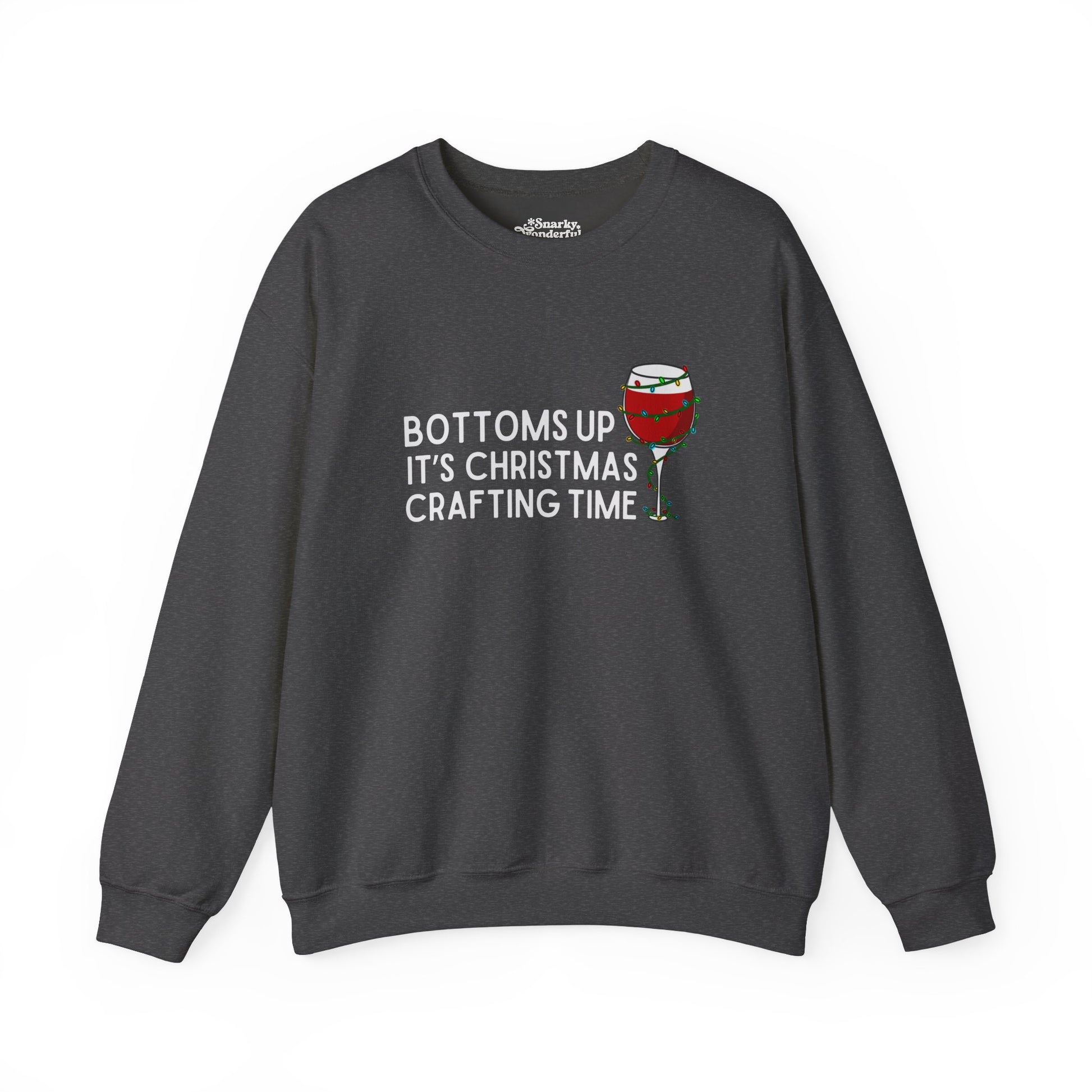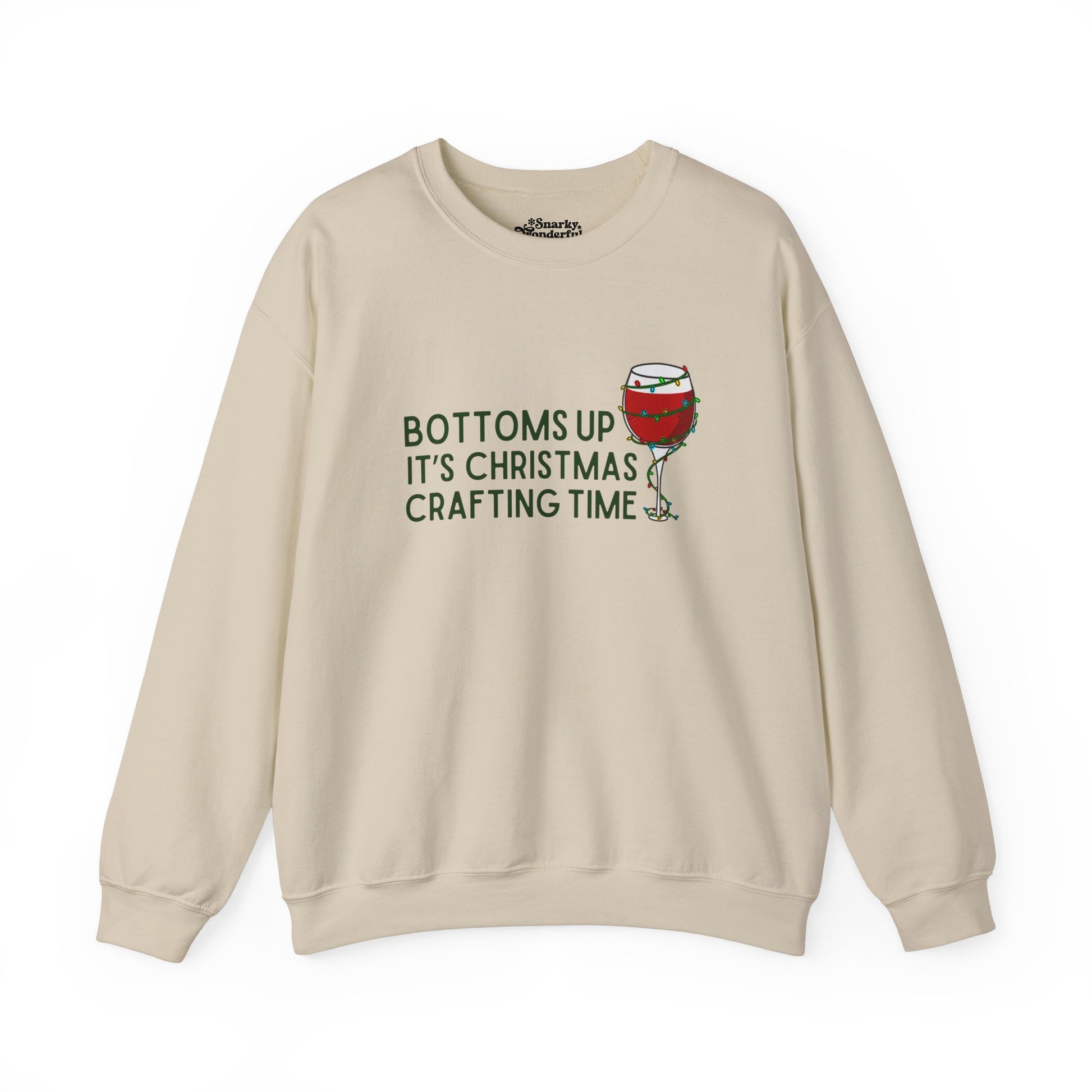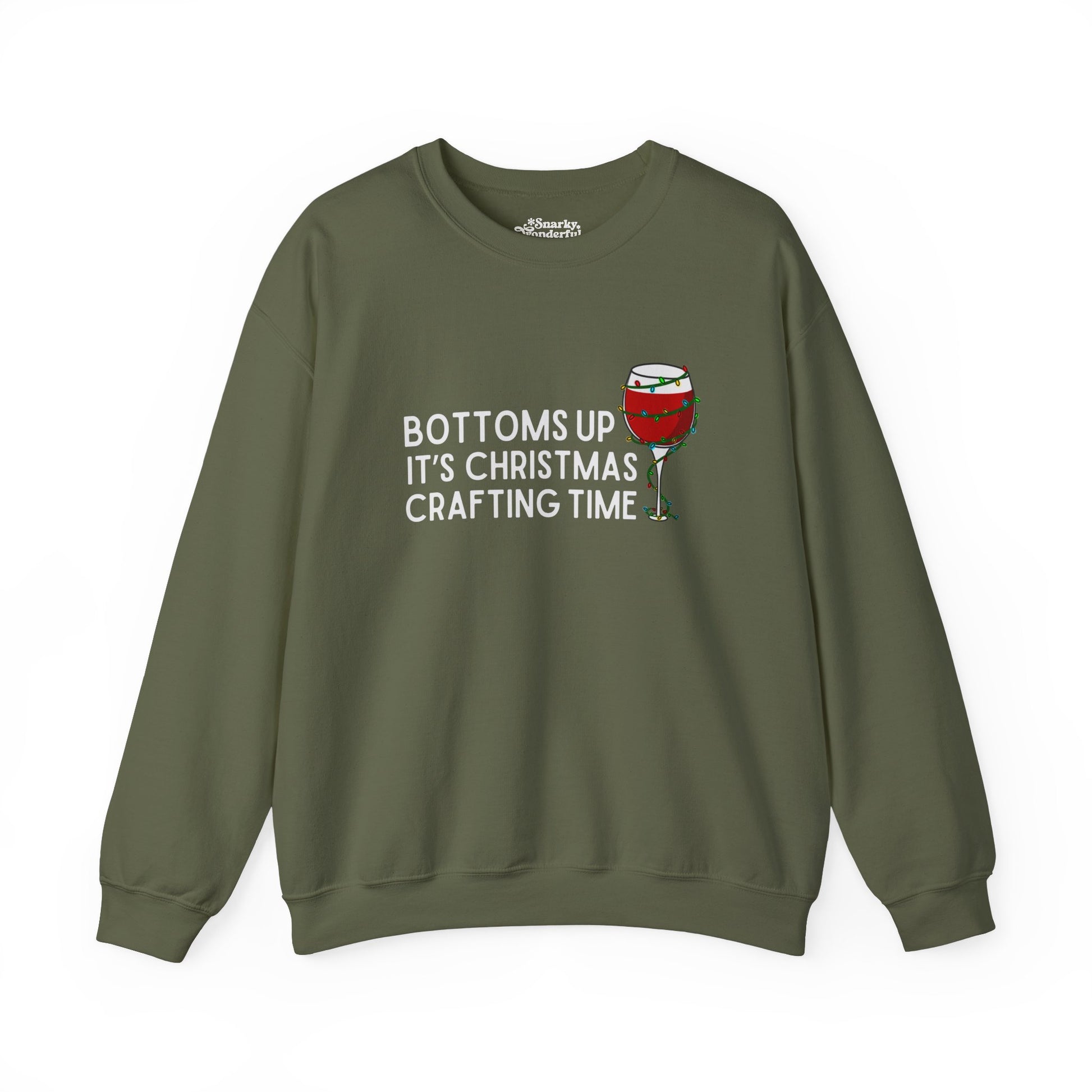 Cheers to the season of crafts and cocktails! This 'Bottoms Up, It's Christmas Crafting Time' sweatshirt is perfect for those who know that a little wine pairs perfectly with a hot glue gun.