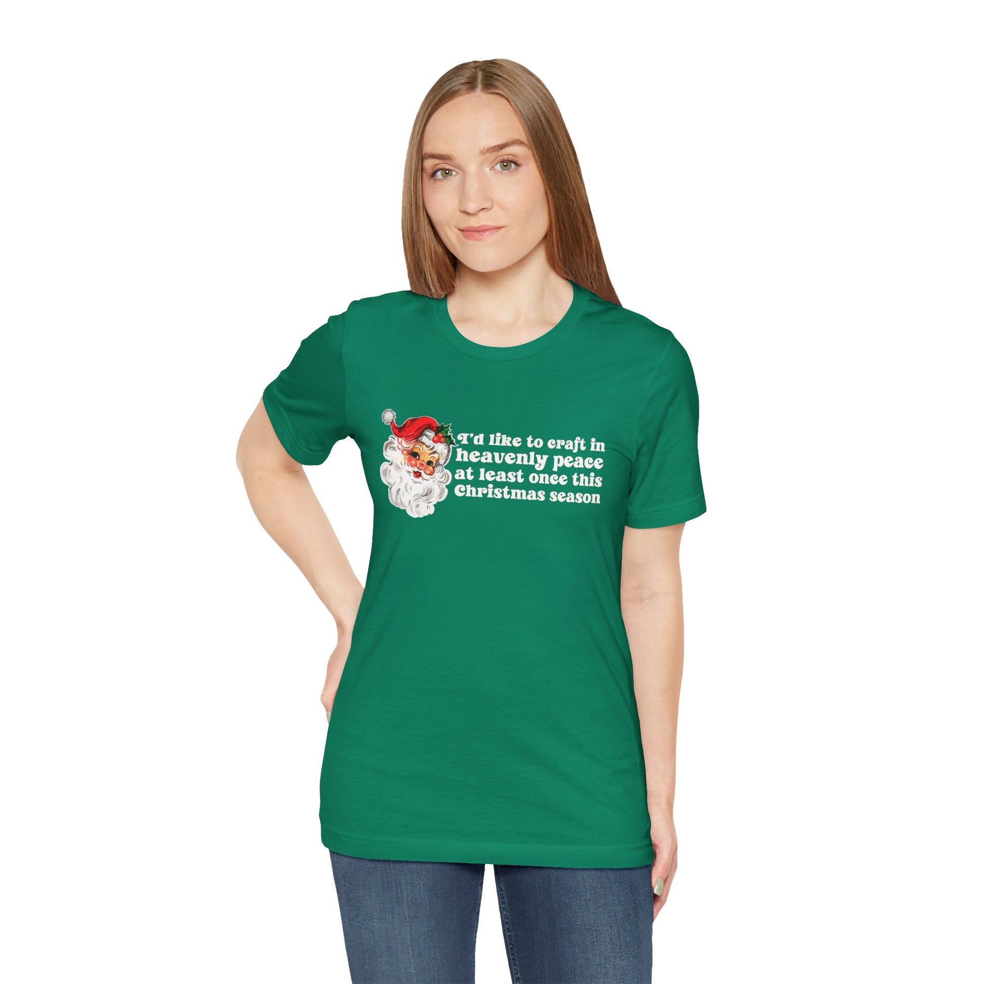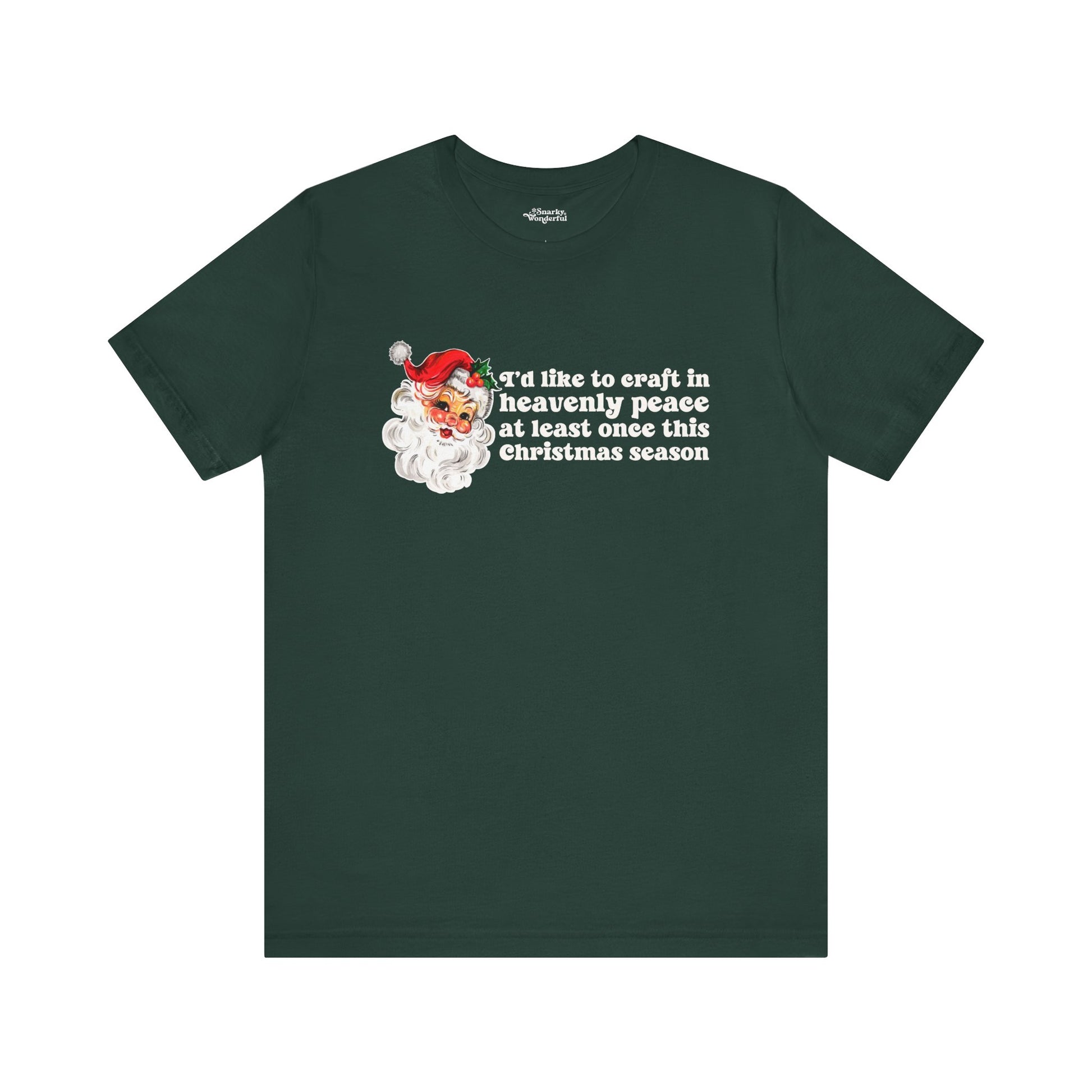 Deck the halls with a dash of quiet creativity! This 'Craft in Heavenly Peace' tee combines holiday spirit with a crafter's honest wish for a moment of festive calm.