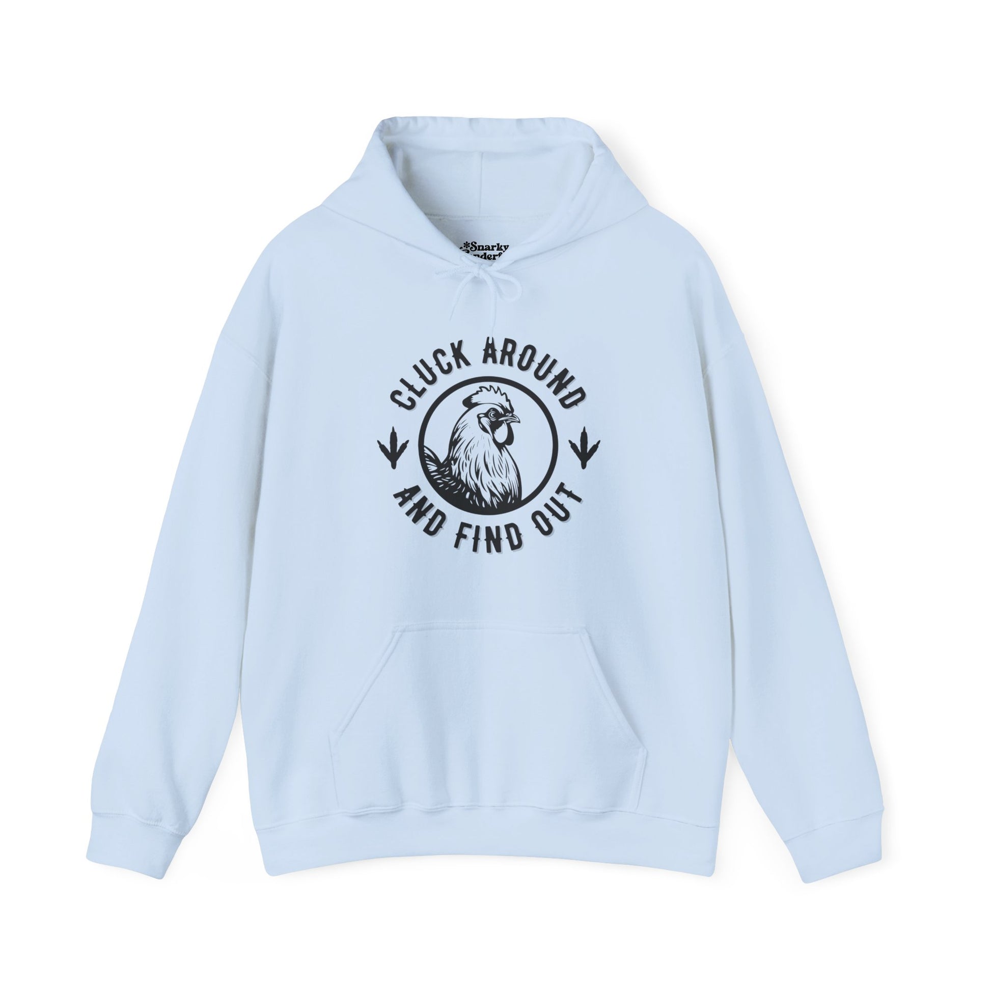 Show off your feisty side with our "Cluck Around and Find Out" hoodie, perfect for proud chicken owners and fans of feathered fun! This bold and hilarious hooded sweatshirt features a sassy chicken design that’s sure to make a statement, whether you’re tending to your flock or just enjoying a laid-back day on the farm.