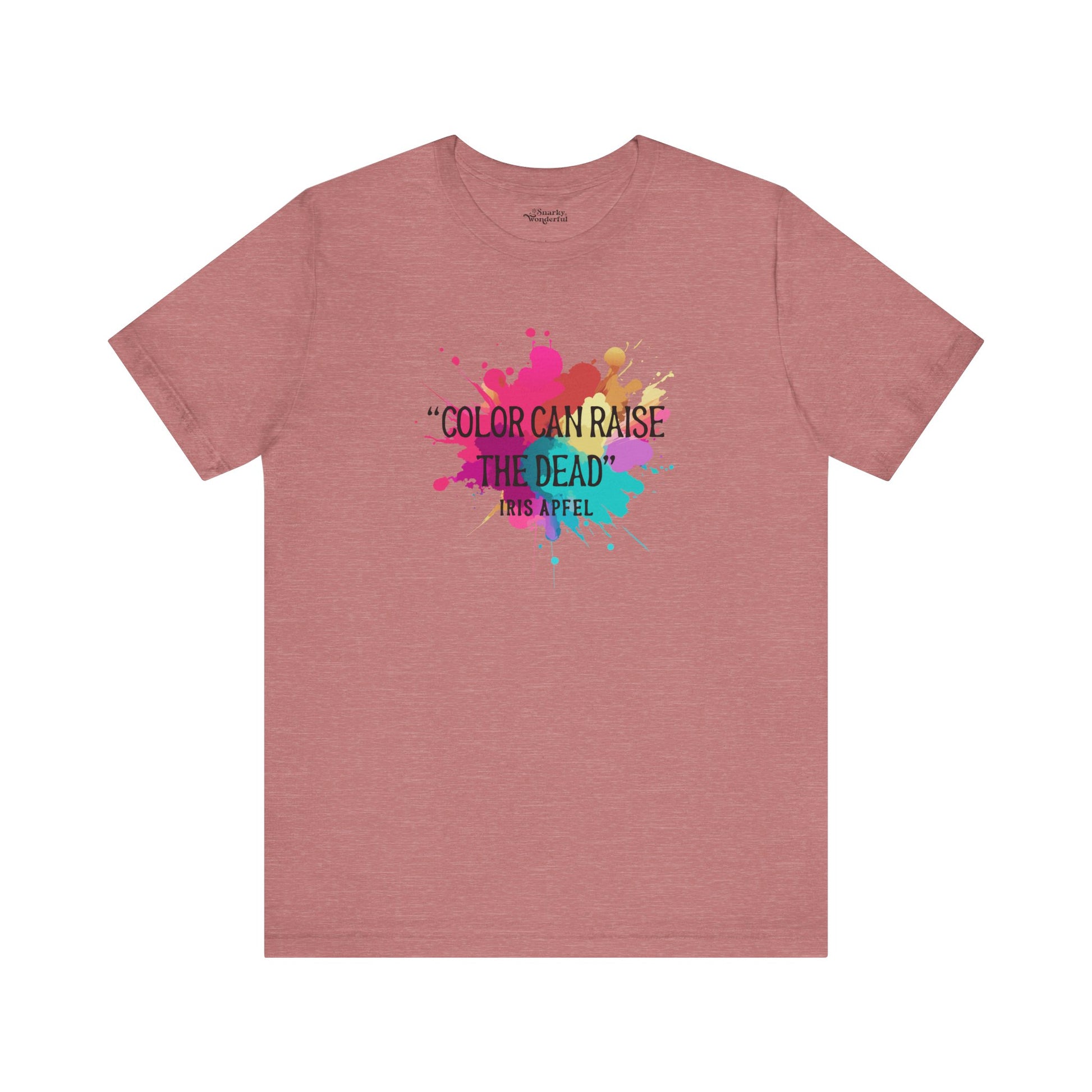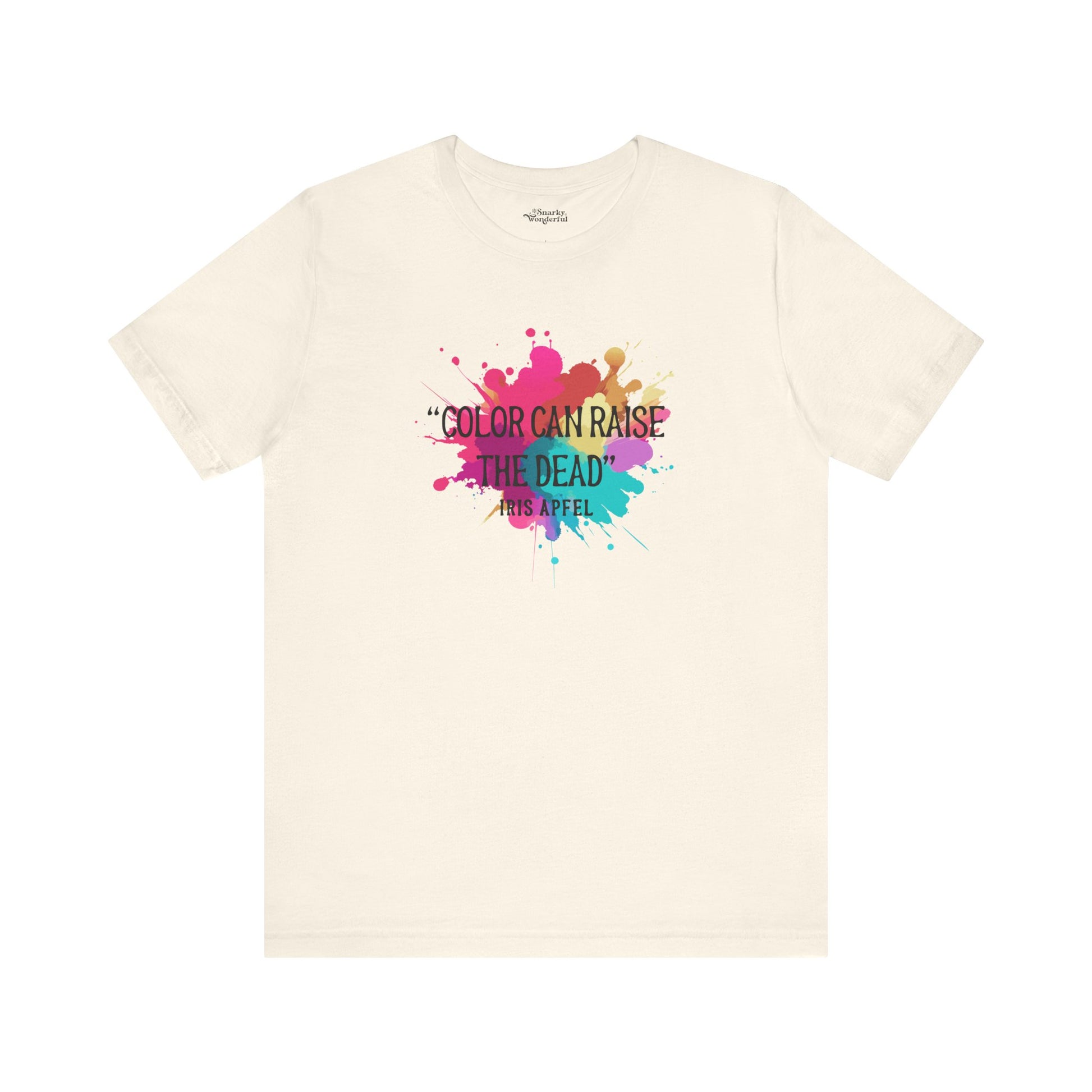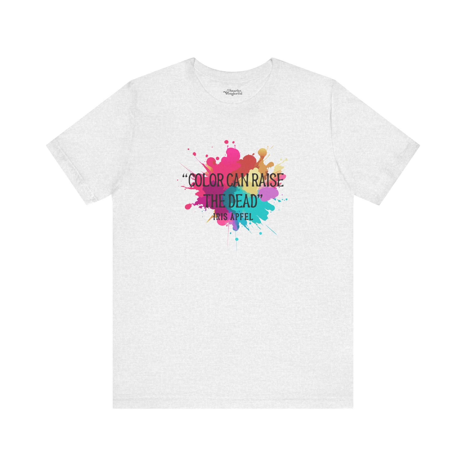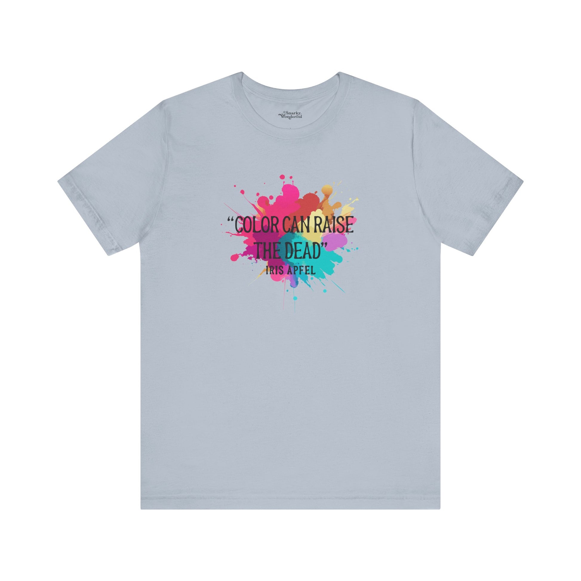 Embrace the vibrant wisdom of fashion icon Iris Apfel with our "Color Can Raise the Dead" t-shirt! This bold and stylish tee is a tribute to the power of color and its ability to transform, uplift, and invigorate. Perfect for those who love to make a statement with their wardrobe, this shirt celebrates the fearless use of color in our creative projects.