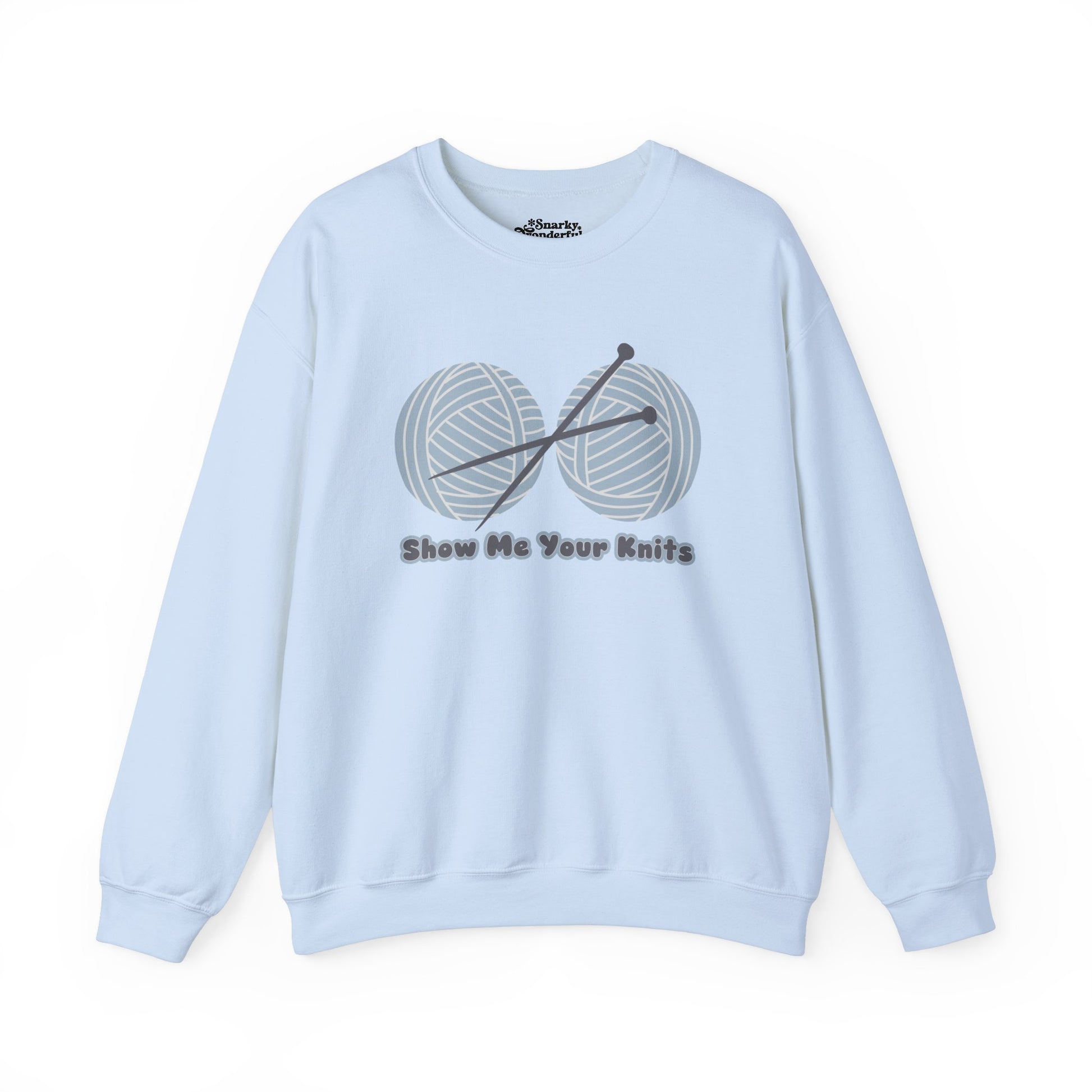 Attention yarn lovers: this is your official invitation to flaunt those fabulous stitches! Our Show Me Your Knits sweatshirt is a cheeky, fun-loving tee that celebrates the joy of knitting (with just the right amount of snark).