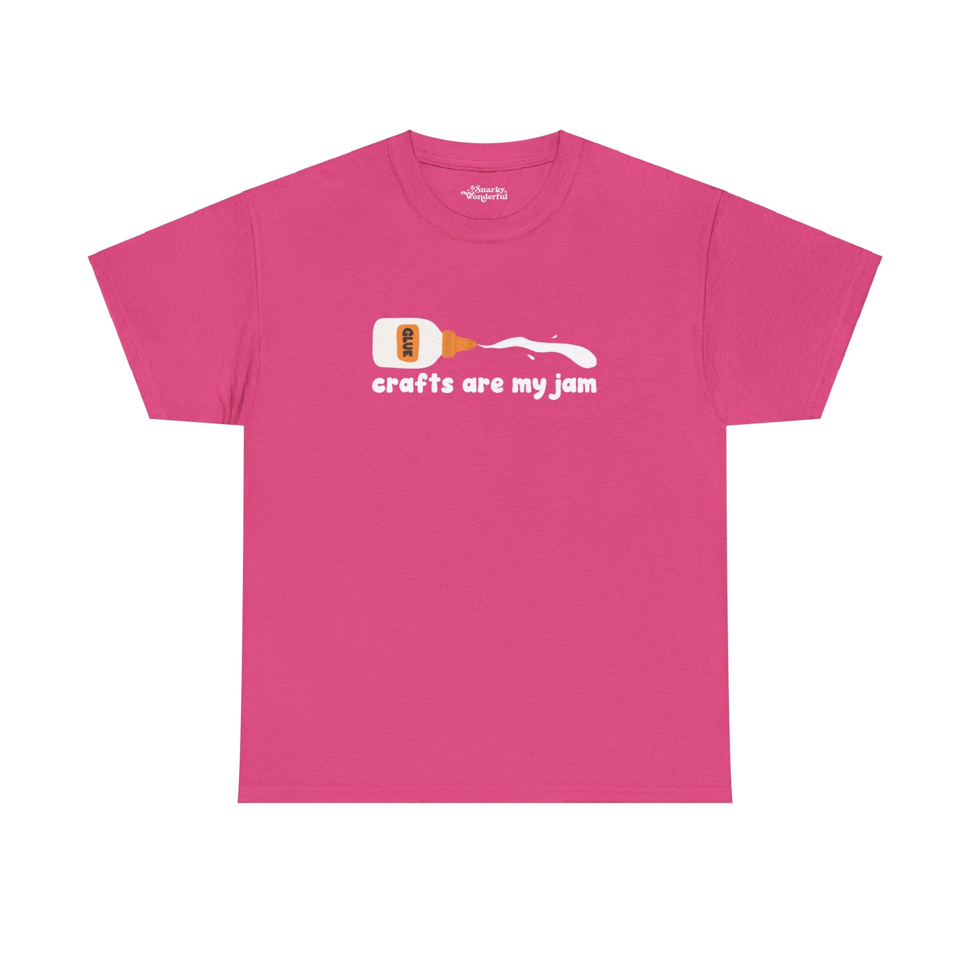 Honor the chaos of creativity with our 'Crafts Are My Jam' t-shirt! This design gives a playful nod to the messy, fun-filled world of crafting. From glue drops to splattered paint, every little mess shows your creative side in action.