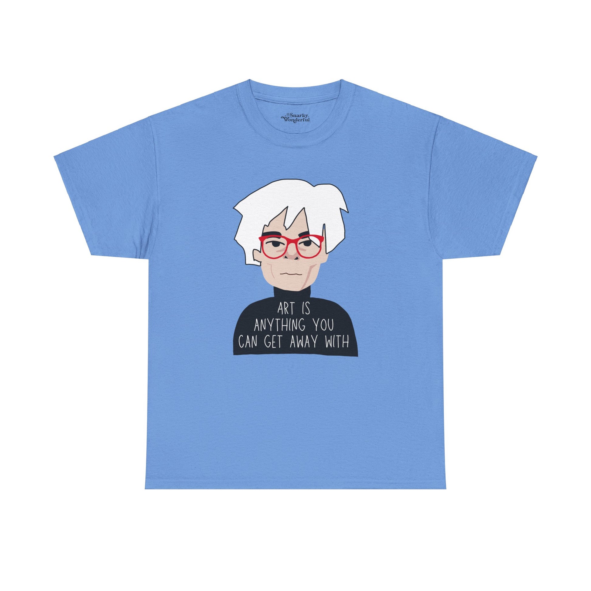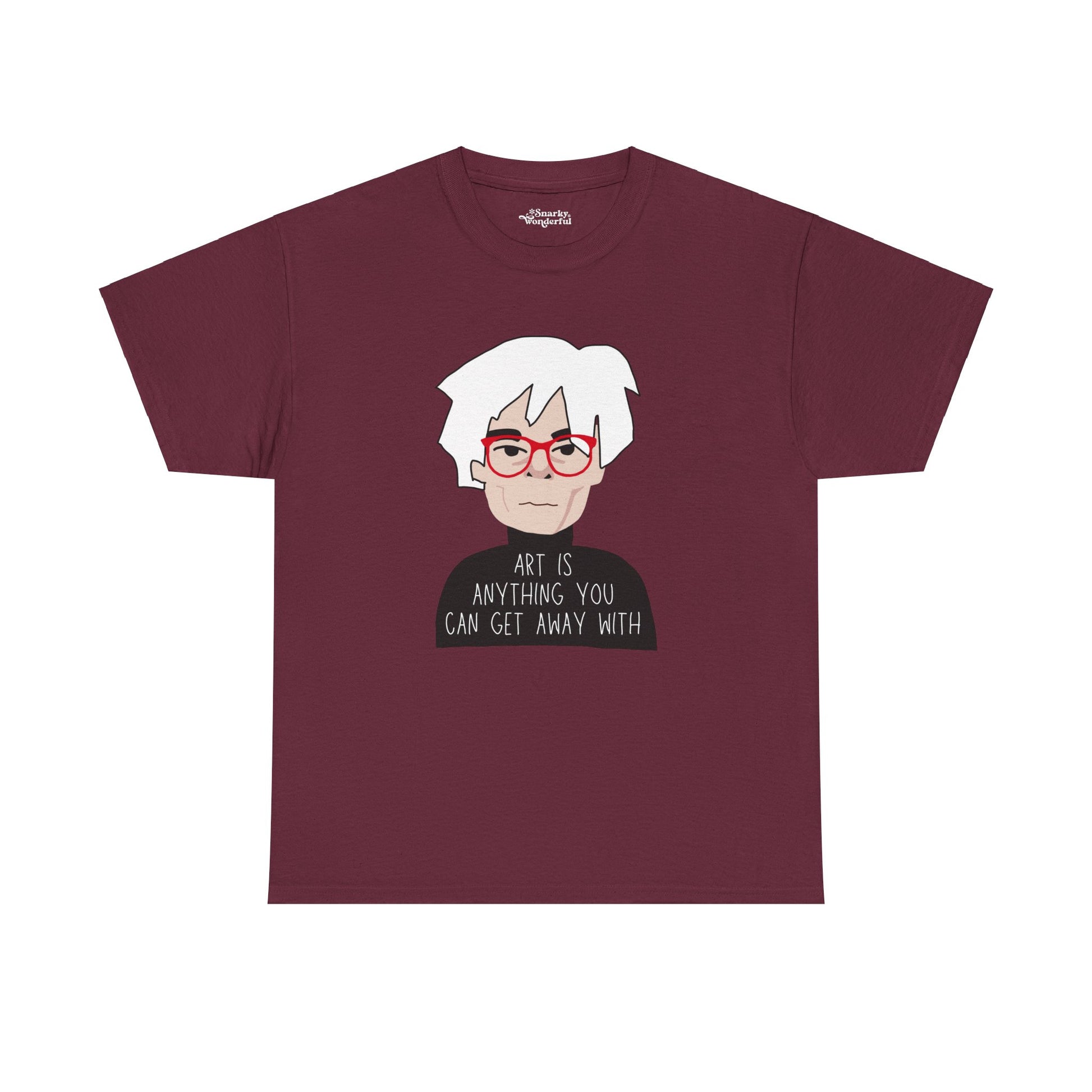 Channel the bold, rebellious spirit of creativity with our 'Art Is Anything You Can Get Away With' t-shirt, featuring a playful nod to the iconic phrase.