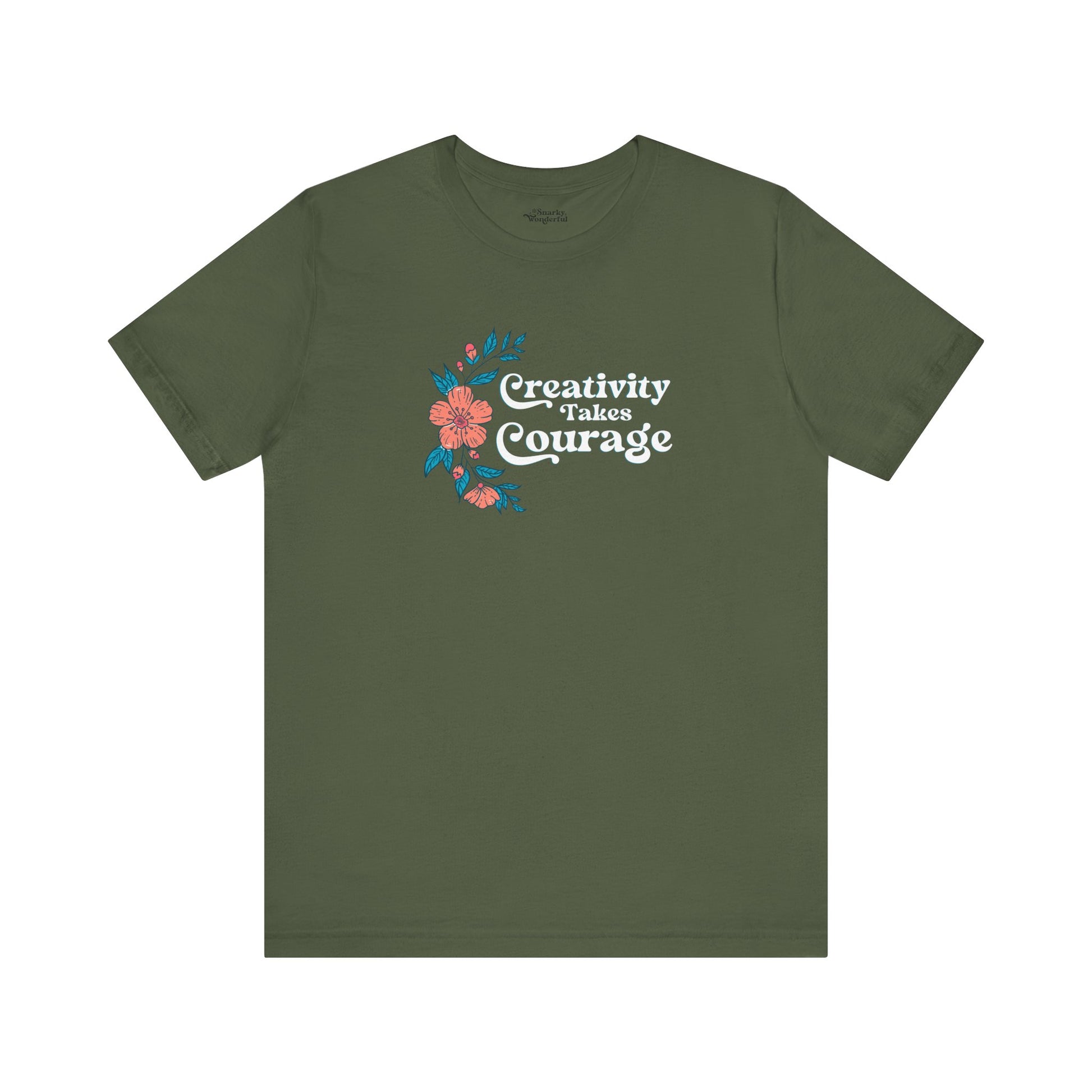 Unleash your inner artist with our "Creativity Takes Courage" t-shirt! This inspirational tee is a tribute to all the brave souls who dare to dream, create, and push the boundaries of their imagination. Perfect for crafters, artists, and makers of all kinds, this shirt celebrates the bold and fearless spirit of creativity.