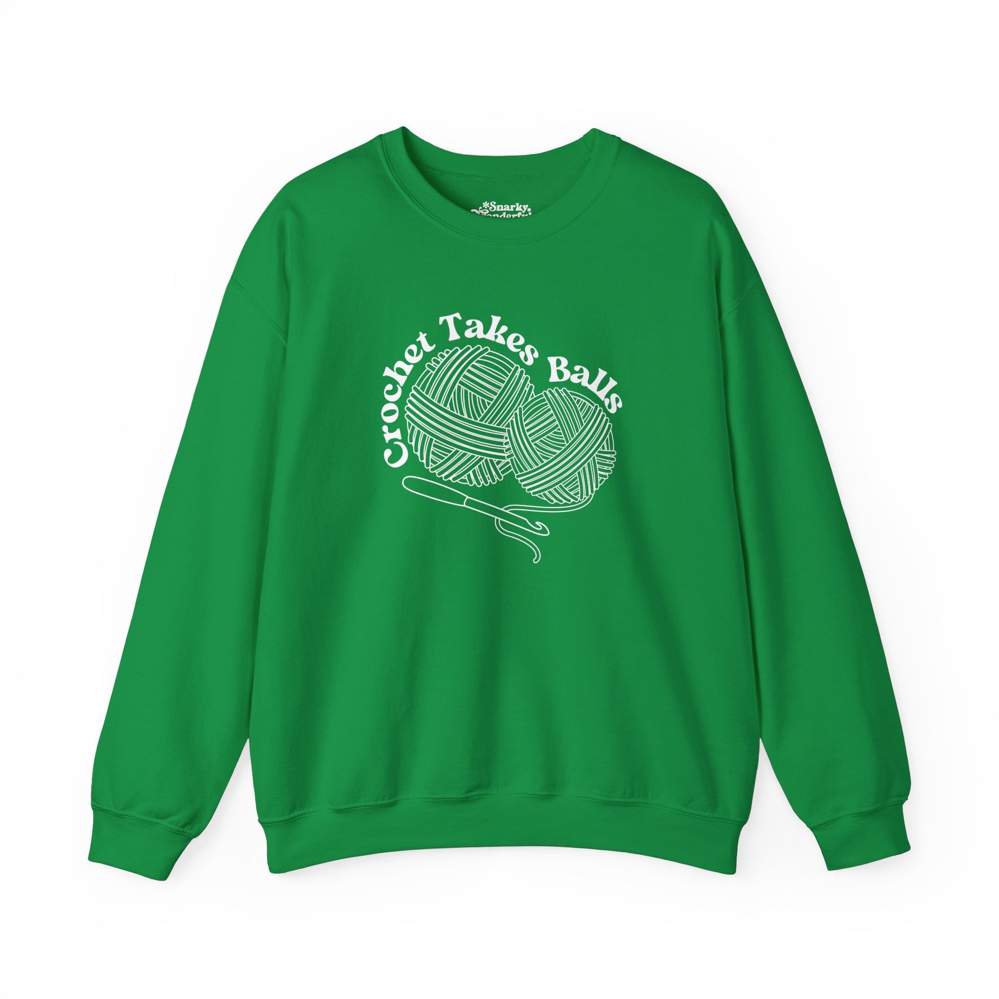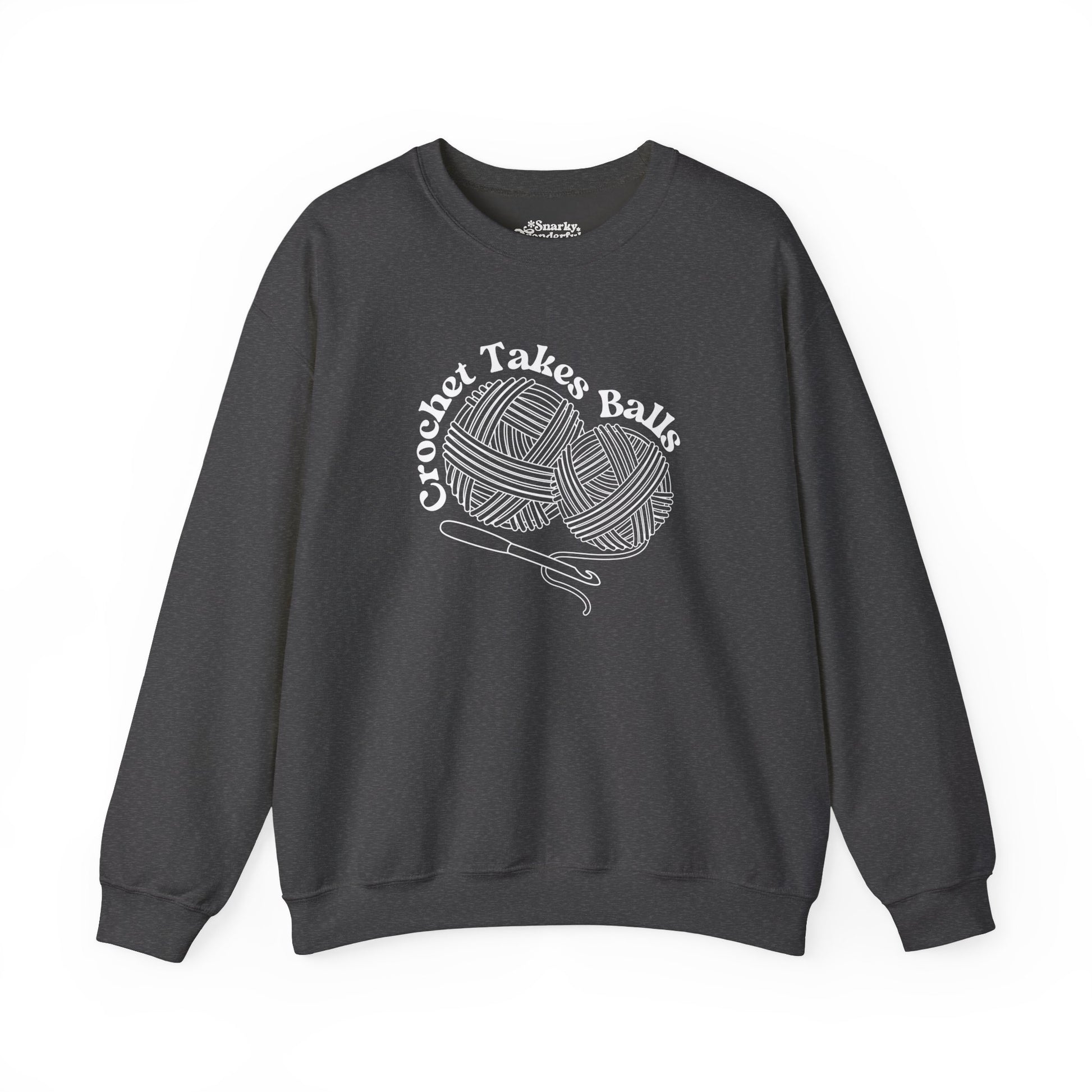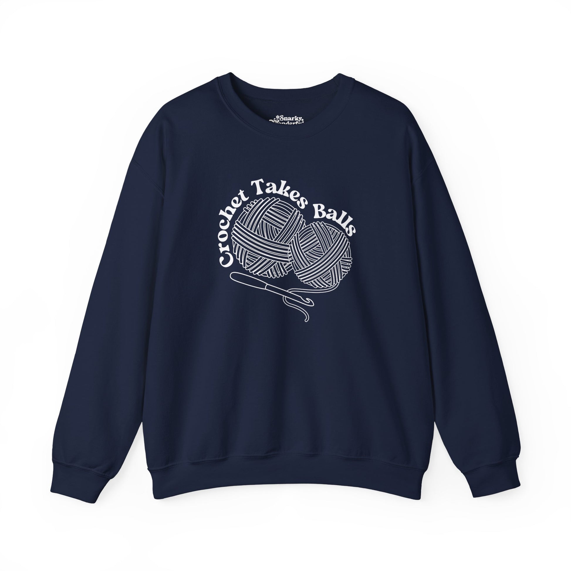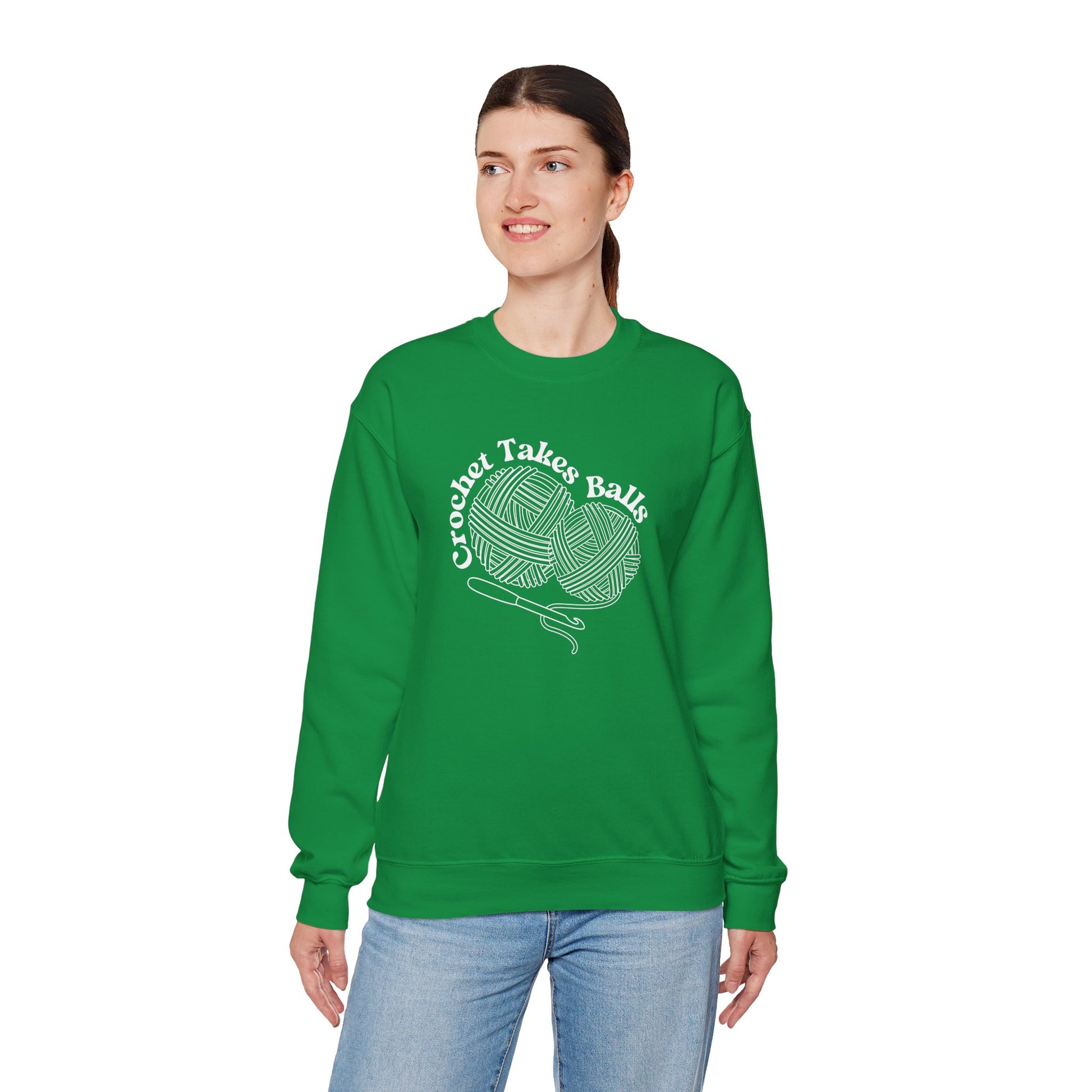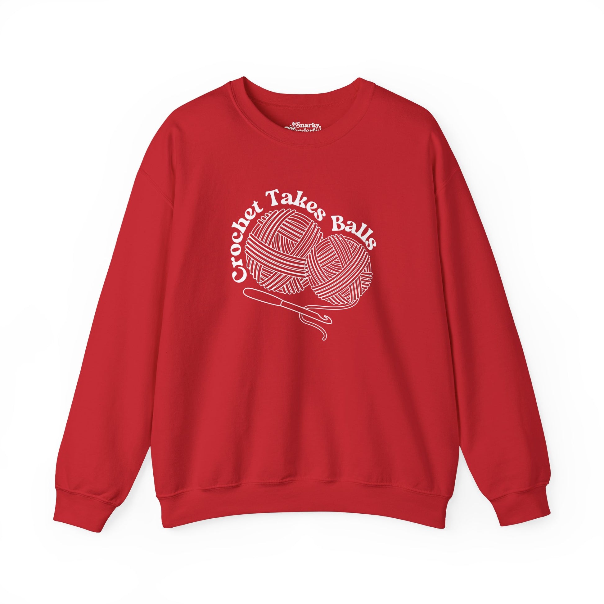 Get ready to make a bold statement with this cheeky 'Crochet Takes Balls' sweatshirt! Featuring two playful balls of yarn and a crochet hook front and center, this design is perfect for anyone who knows that crochet isn't for the faint of heart.