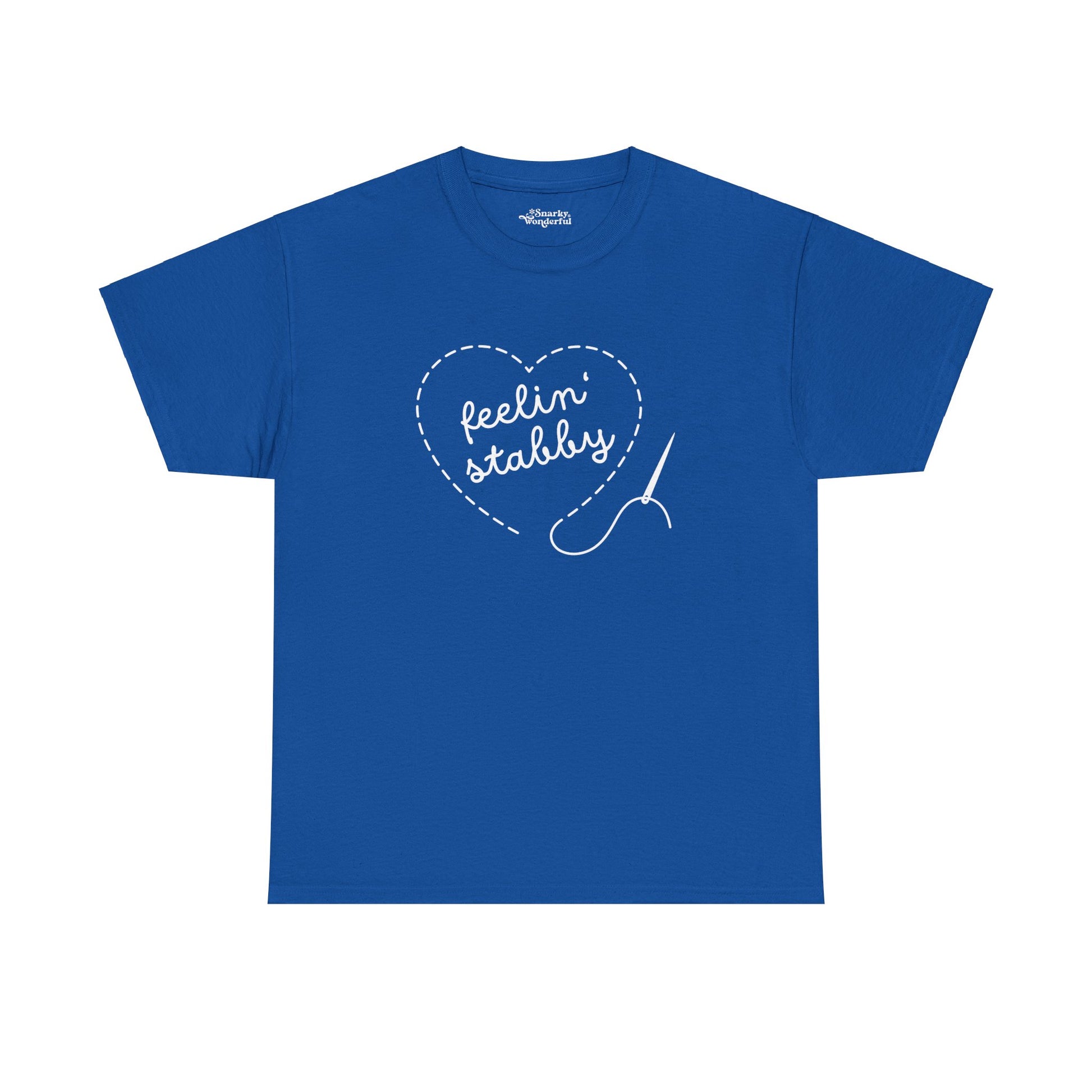 Bring some humor to your crafting with our cheeky 'Feelin' Stabby' t-shirt! Featuring a stitched heart and needle, this design is perfect for anyone who loves needlework, embroidery, or sewing—but knows the occasional frustration it can bring.