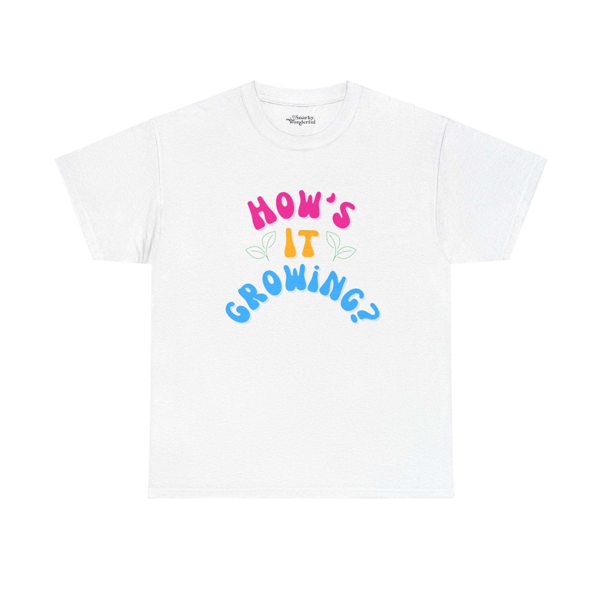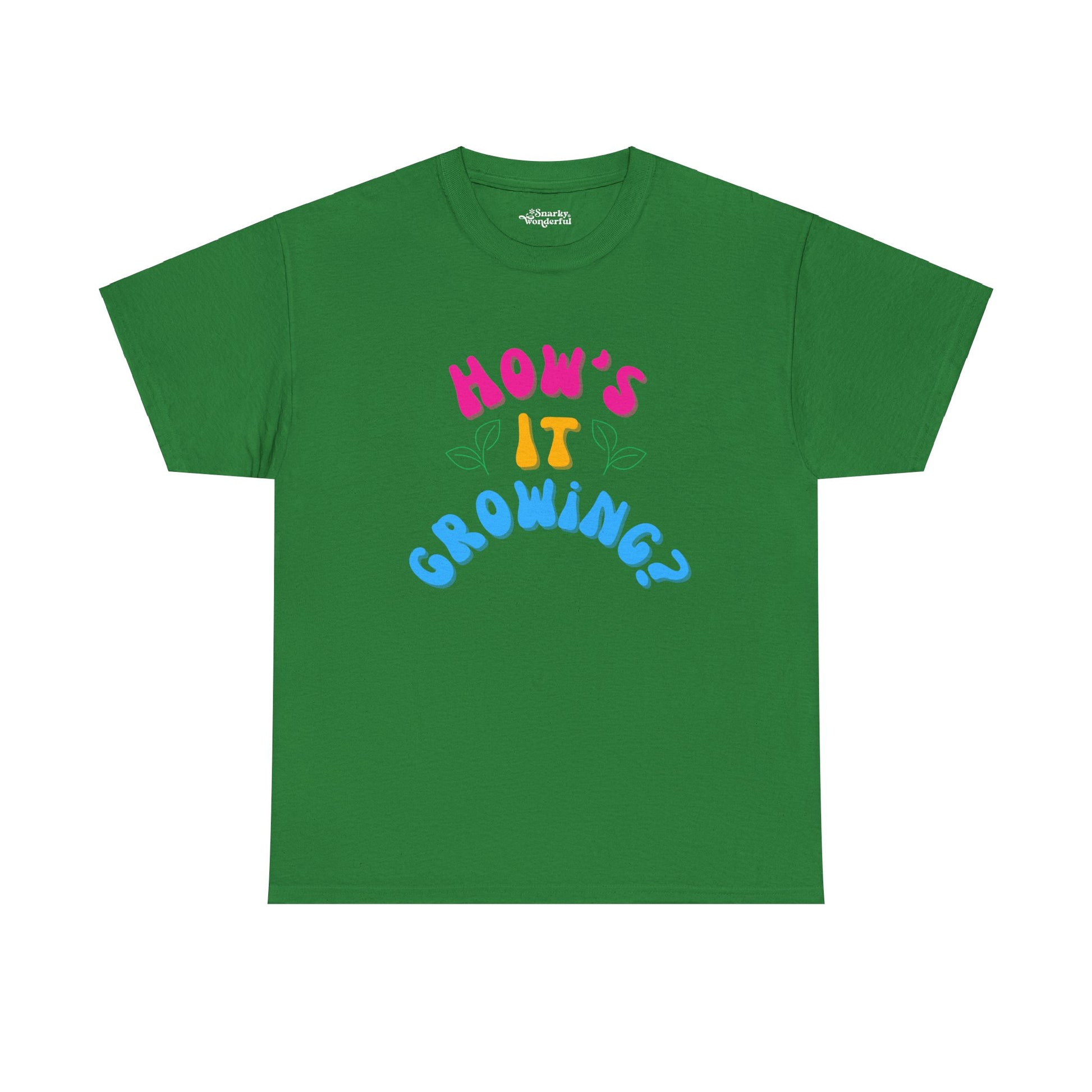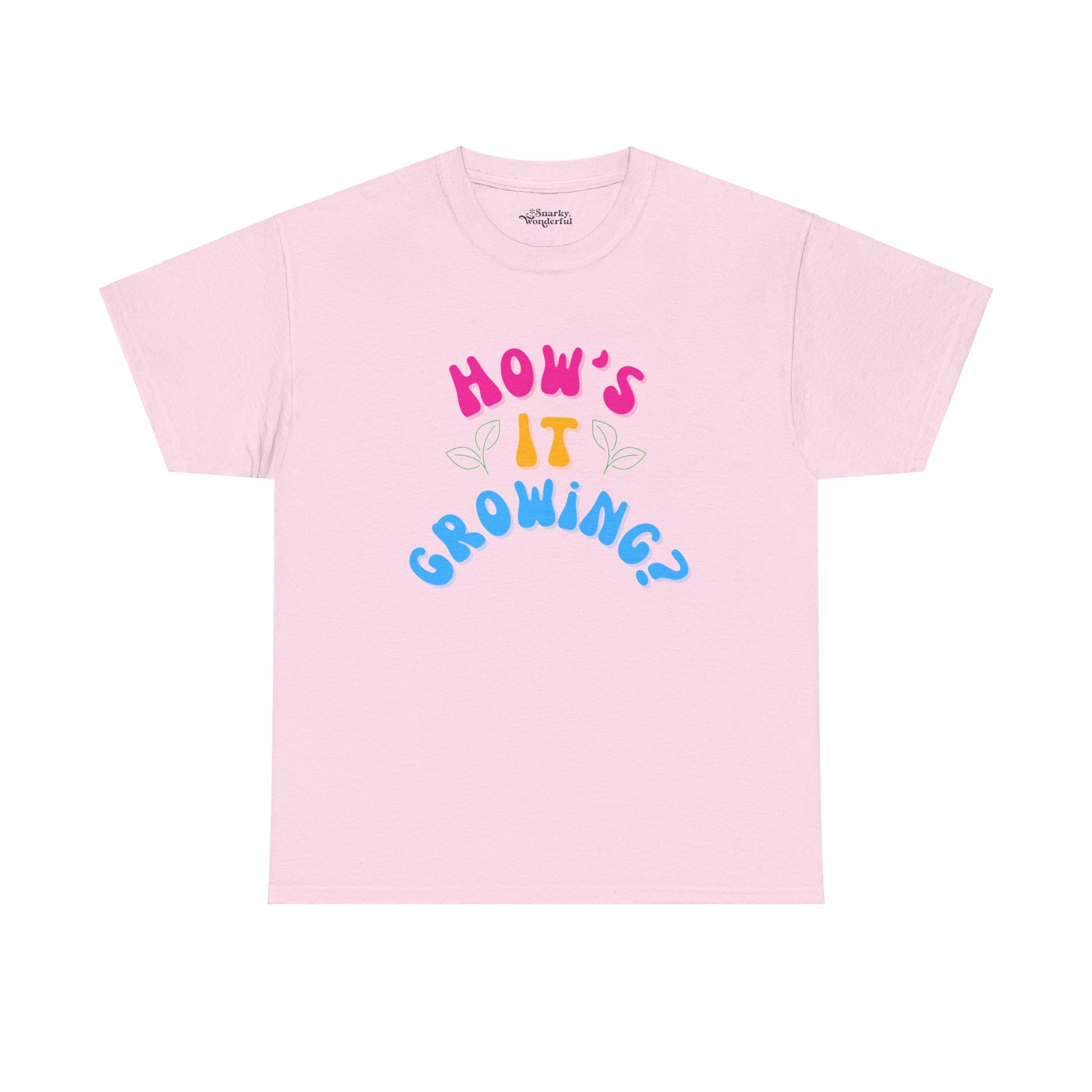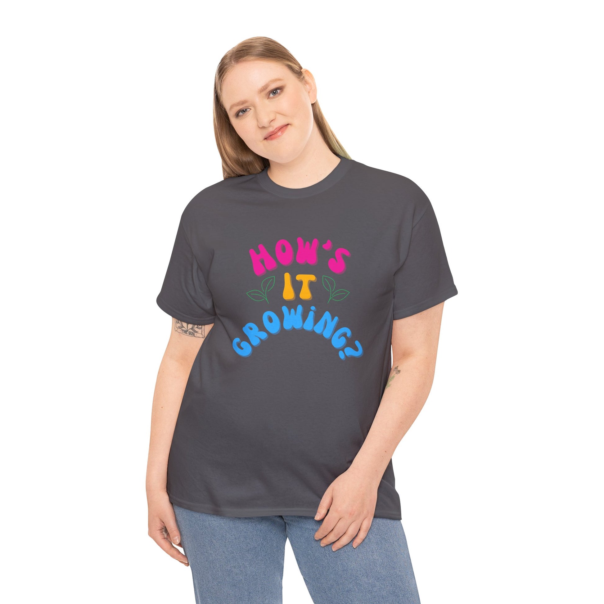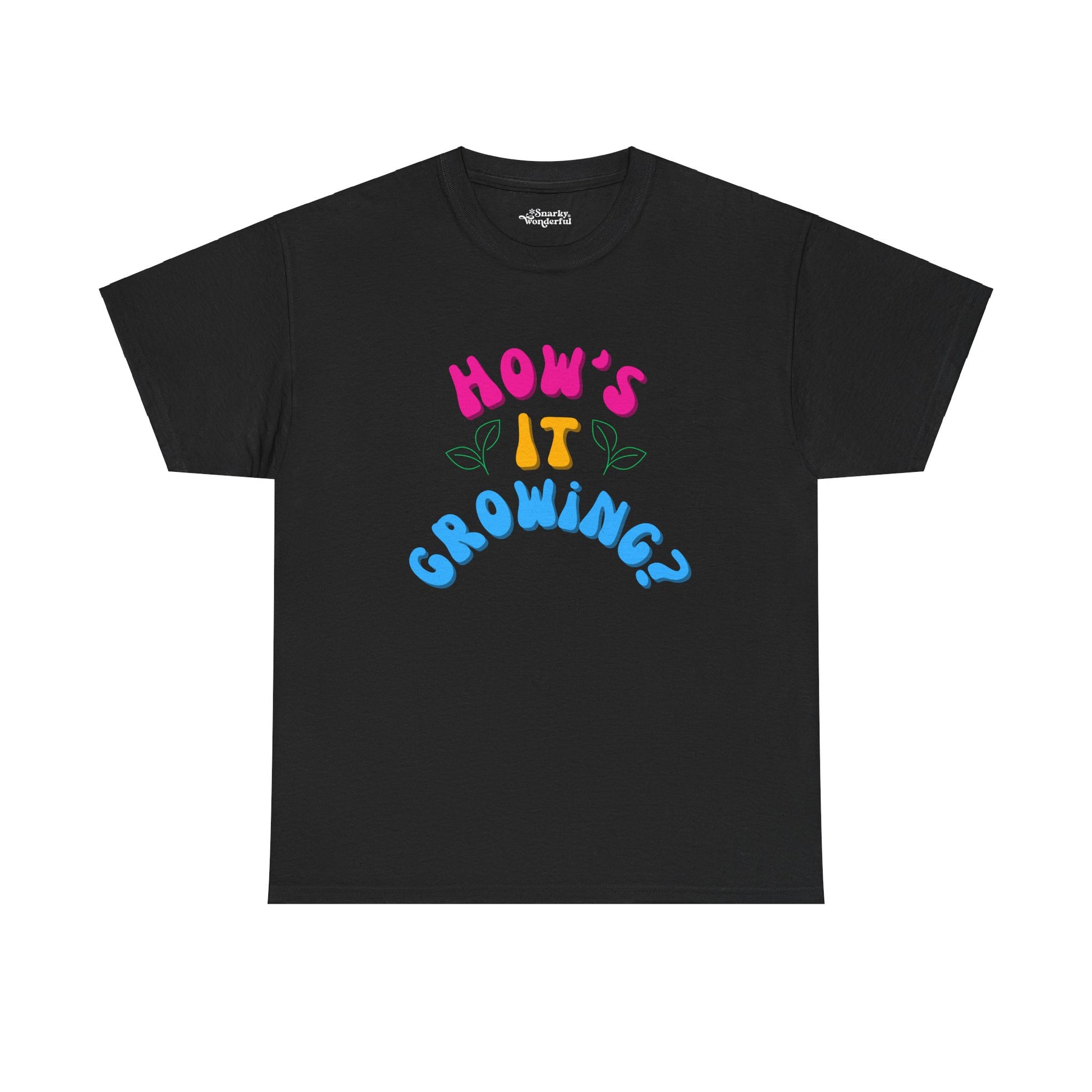 Greet the world "plant lover style" with our 'How’s It Growing' t-shirt! Featuring a fun neon font, this tee is perfect for fellow green thumbs who enjoy sharing their love for all things leafy.