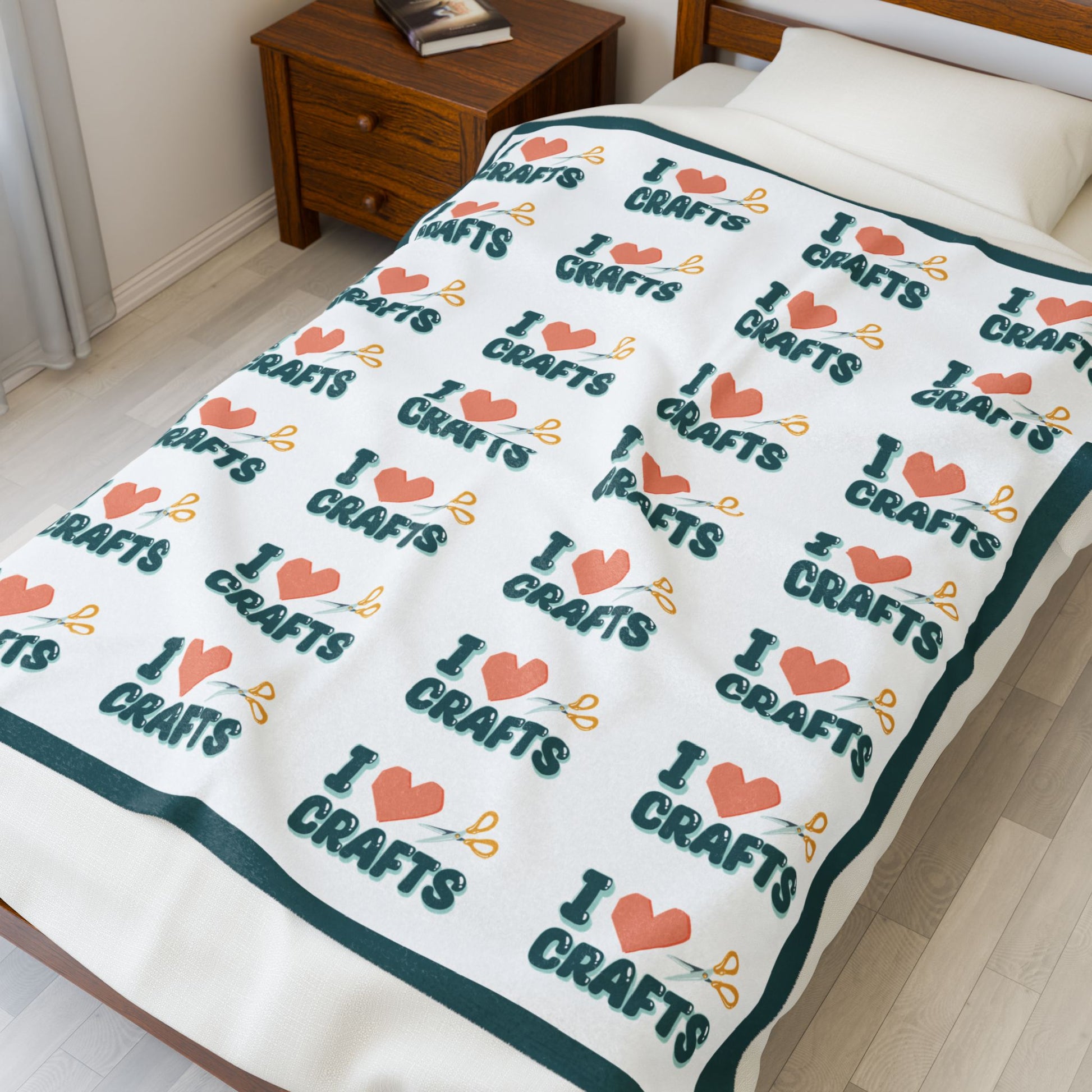 "I Heart Crafts" Lightweight Velveteen Blanket
