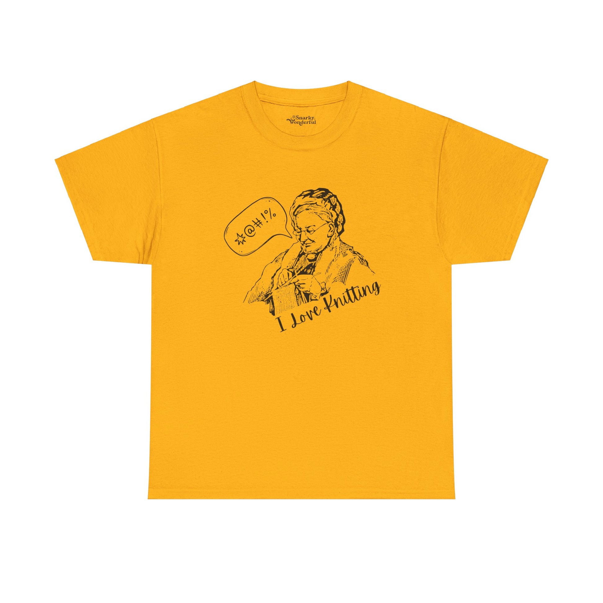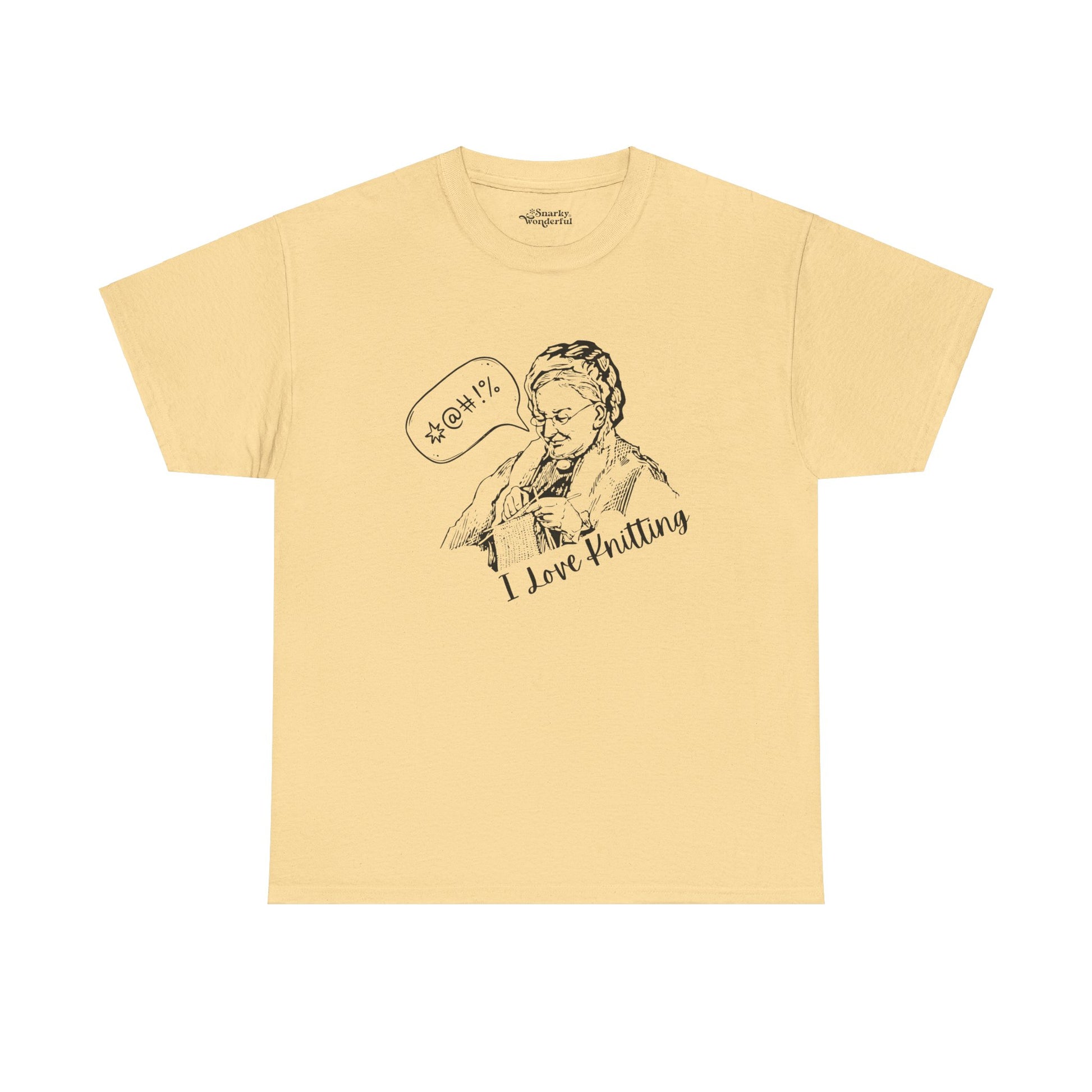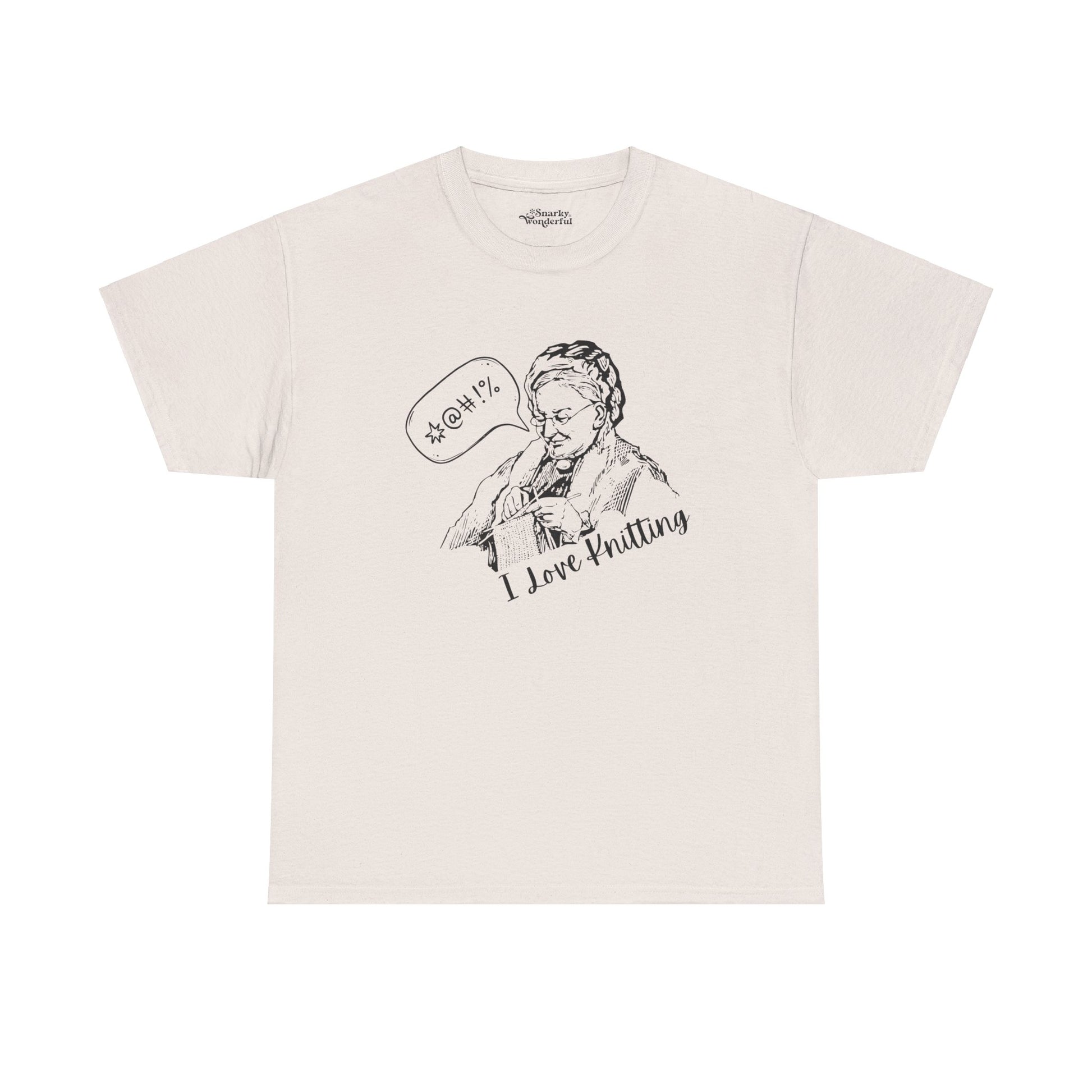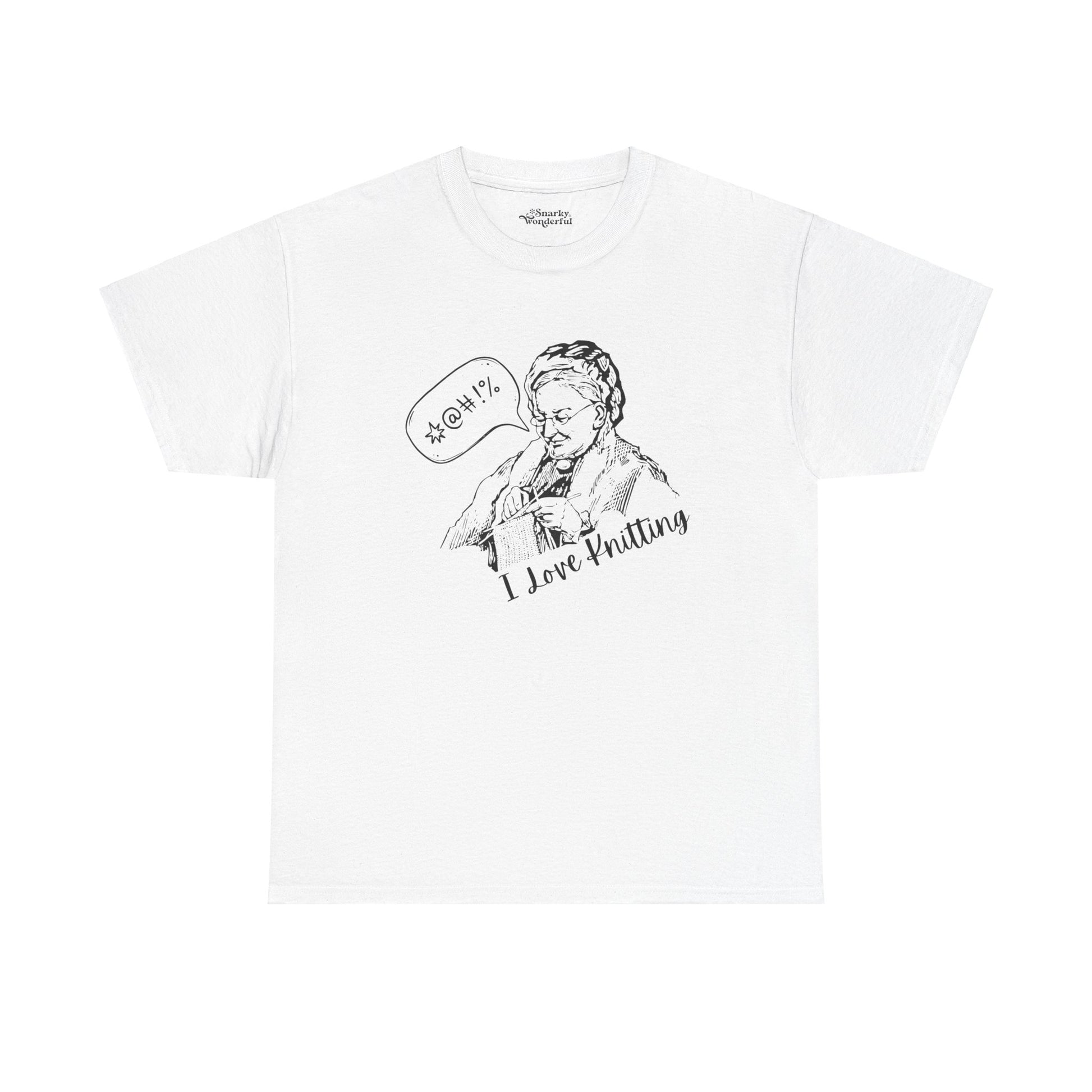 Capture the ups and downs of knitting with our 'I Love Knitting ($%&!)' t-shirt! Featuring a funny graphic of a knitter mid-project, complete with a cheeky curse bubble, this tee is perfect for those who know the joys—and occasional frustrations—of knitting.