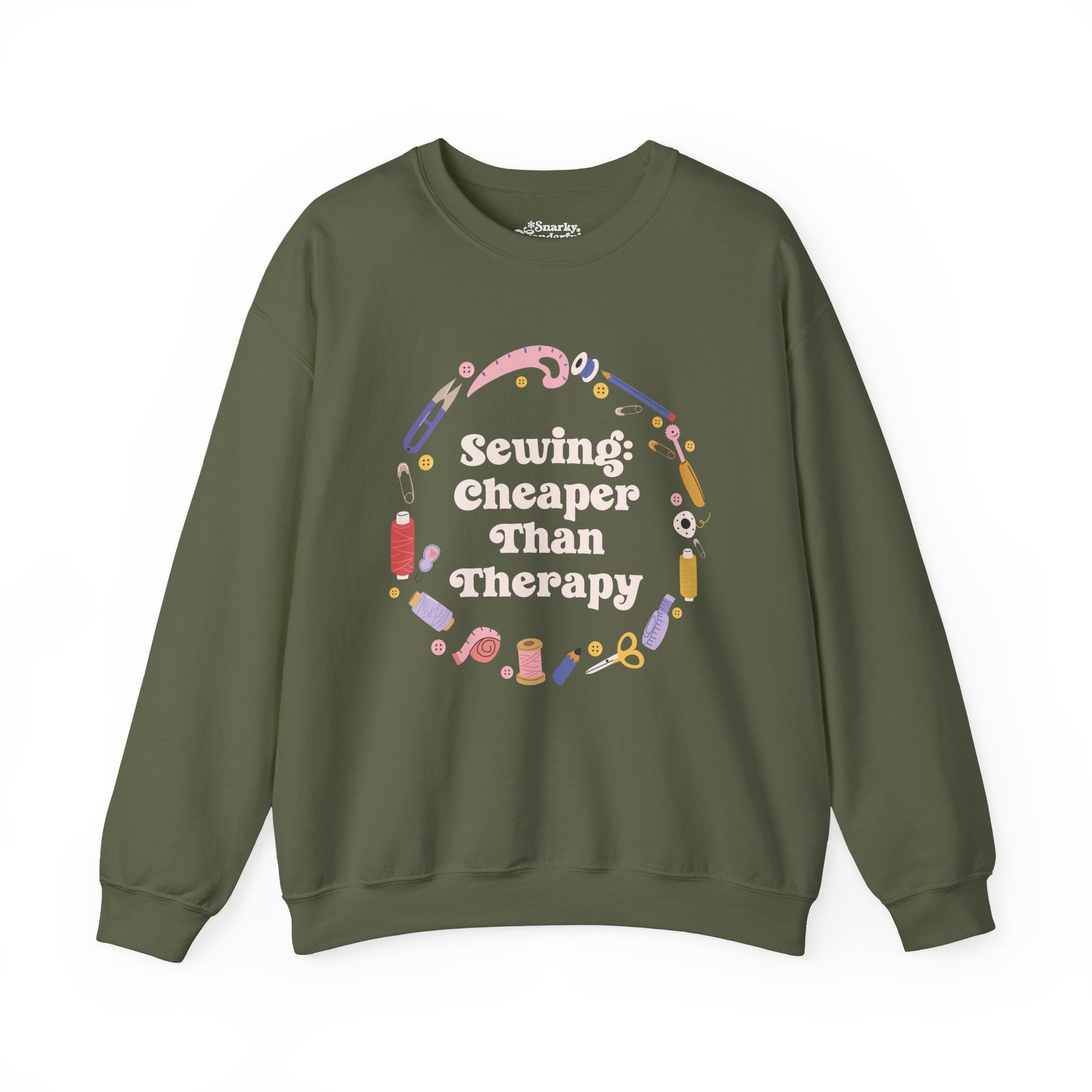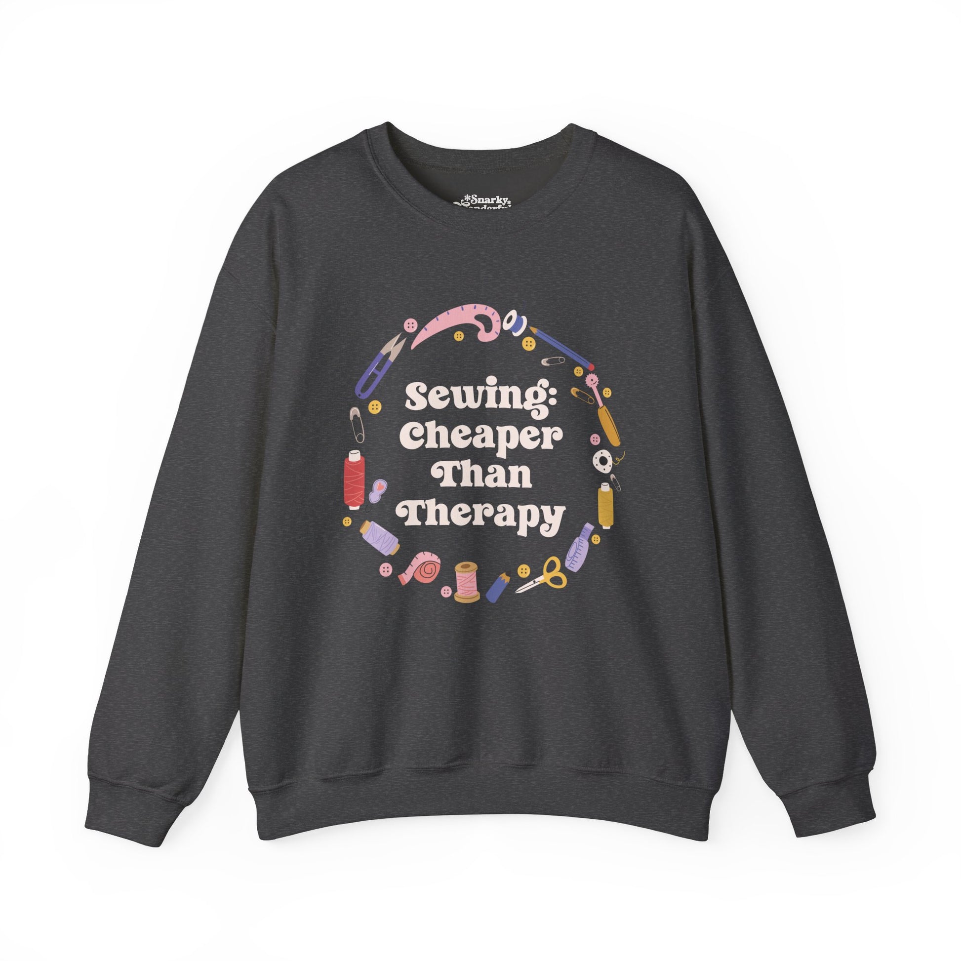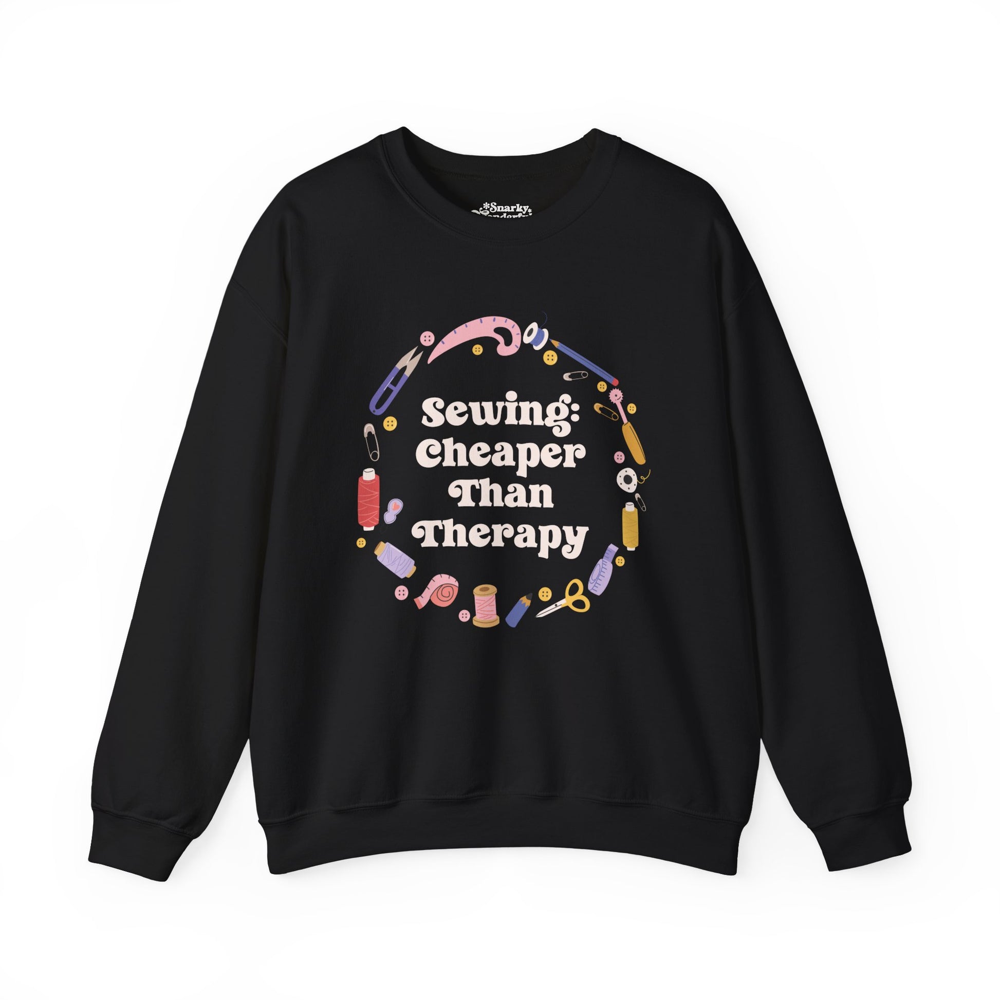 Bad day? Thread the machine, grab some fabric, and let the sewing magic begin! Our Sewing: Cheaper Than Therapy sweatshirt is for those who find their happy place behind a sewing machine, turning stitches into stress relief one project at a time.