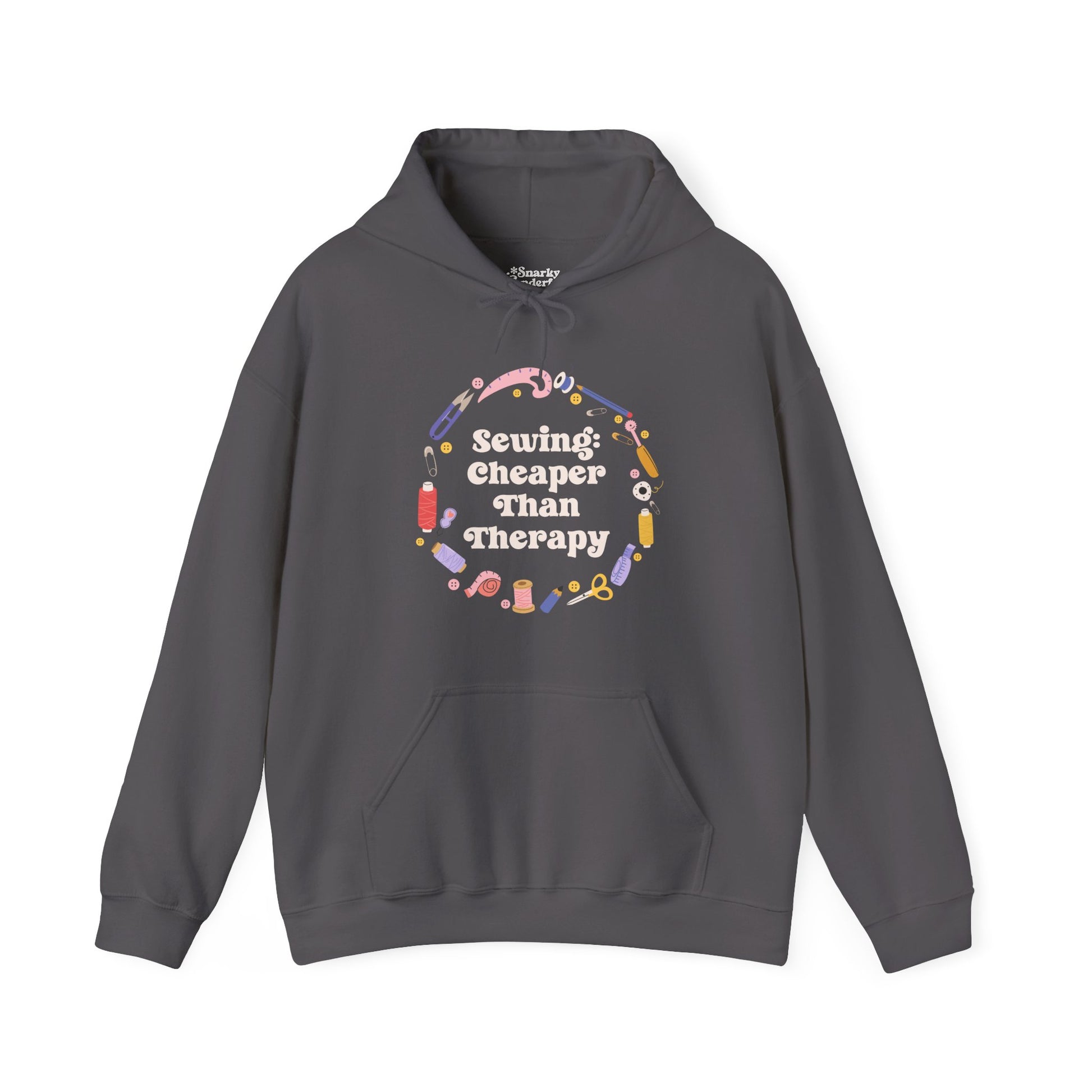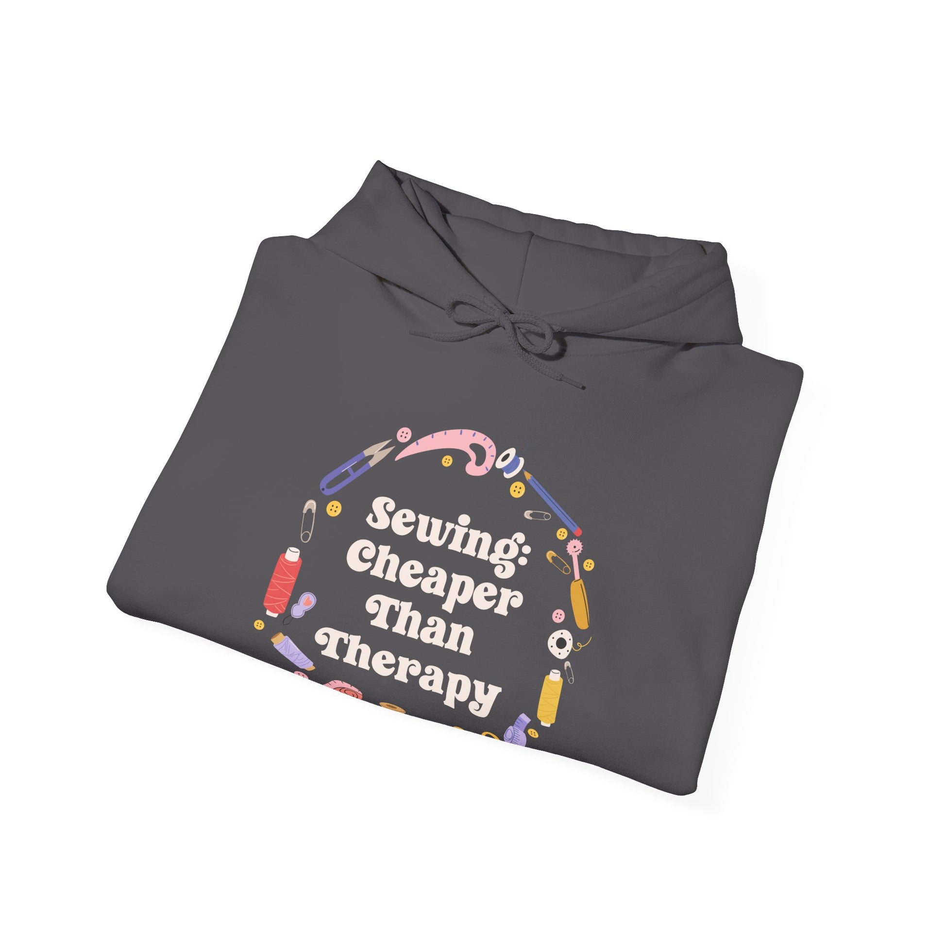 Bad day? Thread the machine, grab some fabric, and let the sewing magic begin! Our Sewing: Cheaper Than Therapy hoodie is for those who find their happy place behind a sewing machine, turning stitches into stress relief one project at a time.