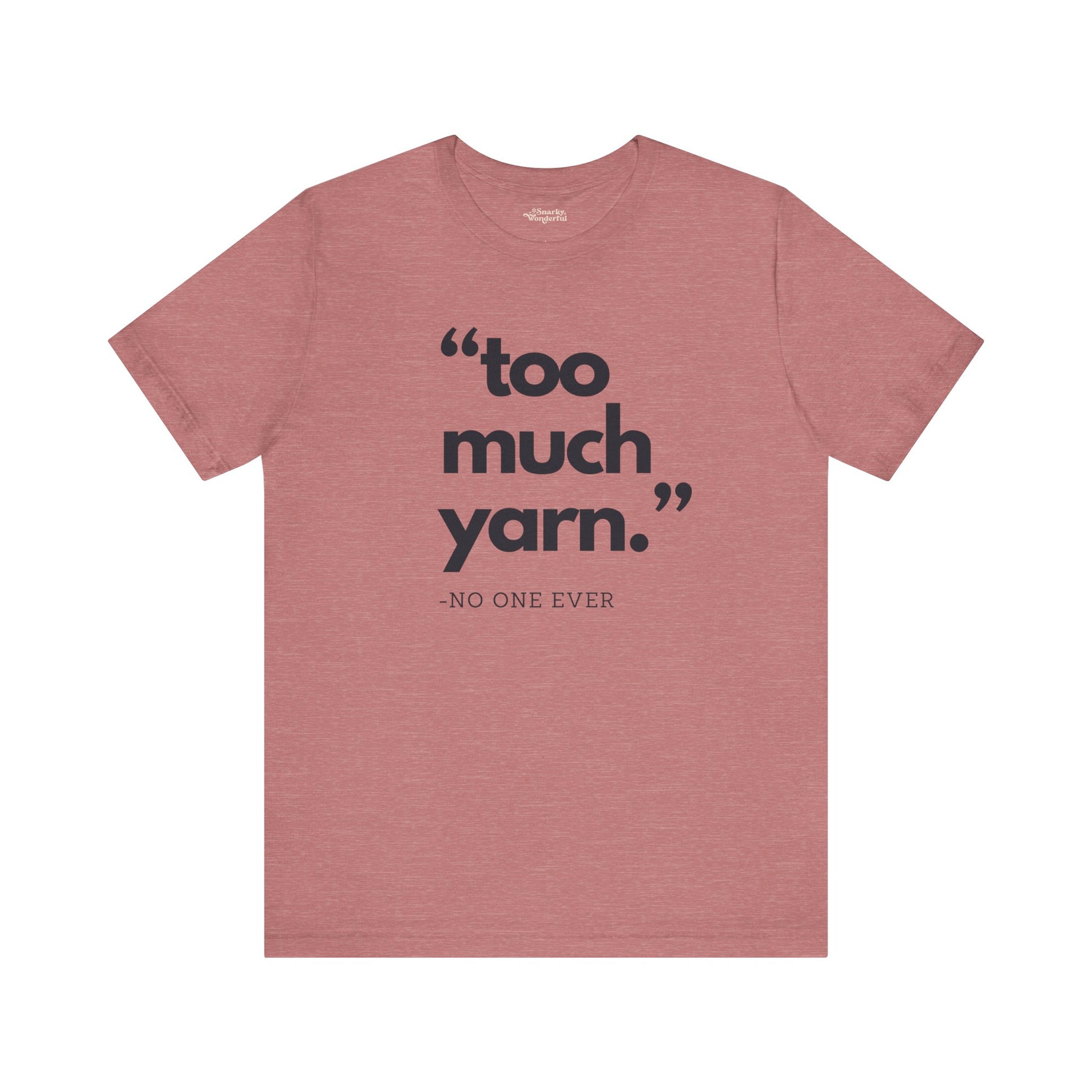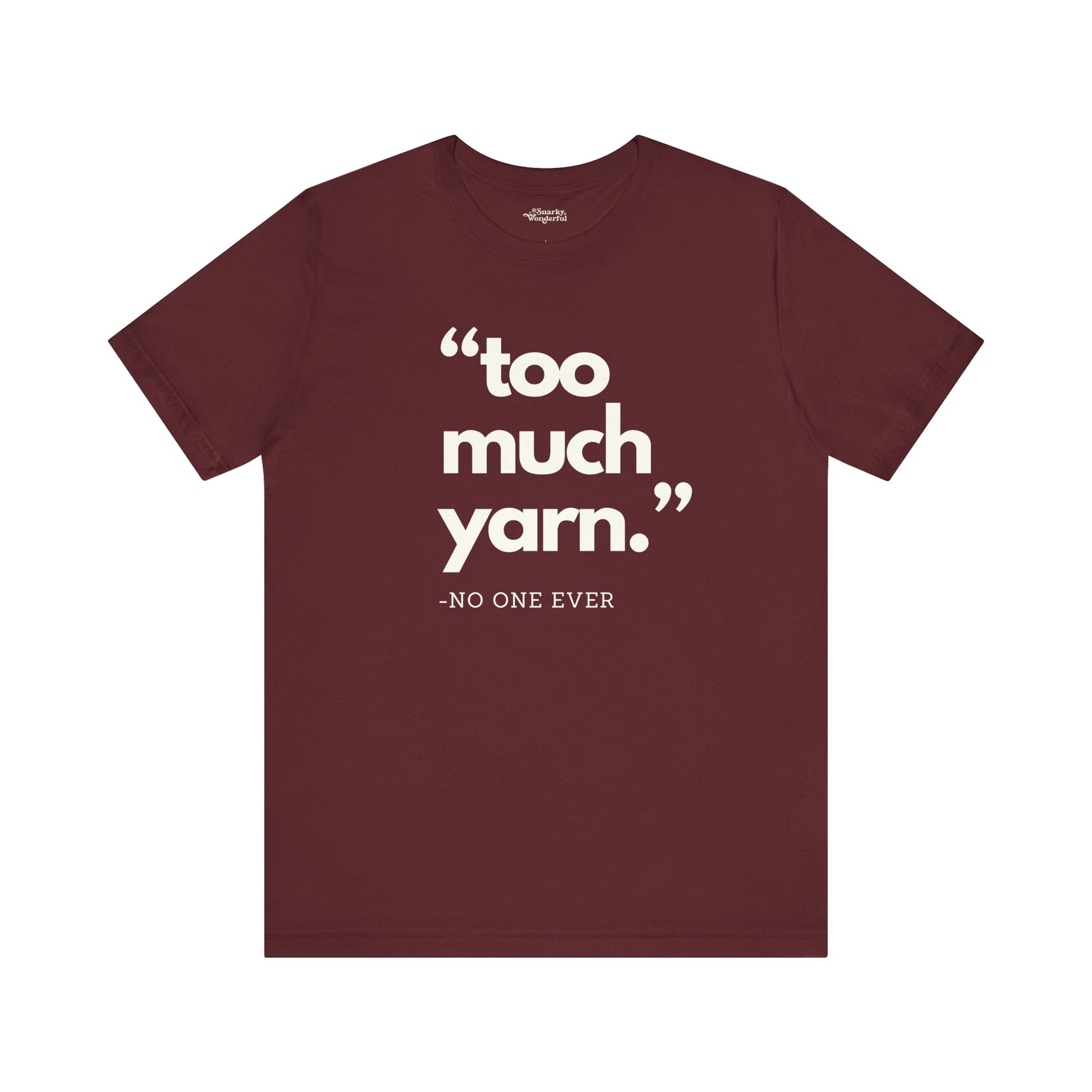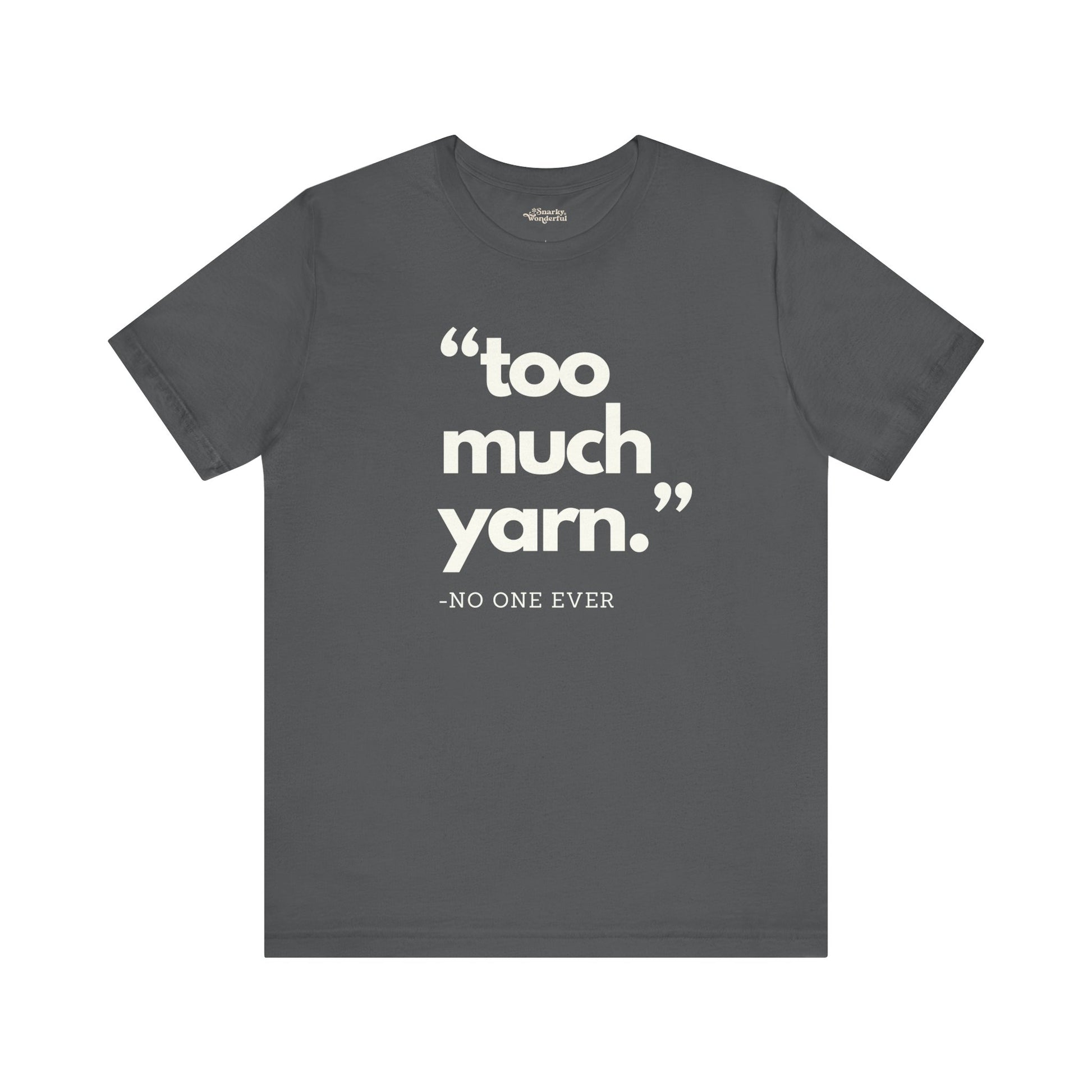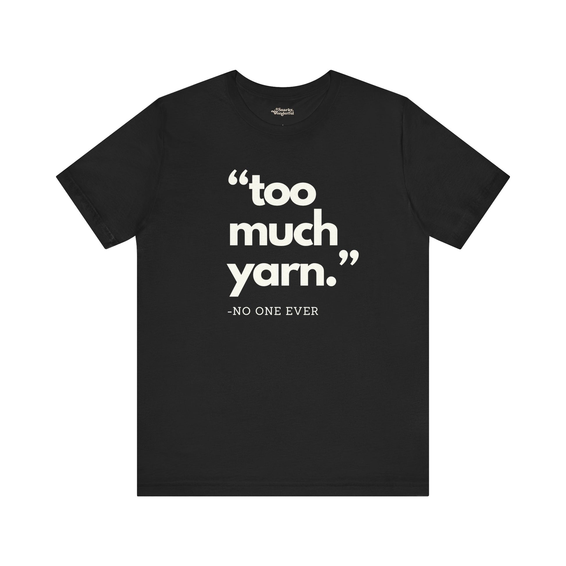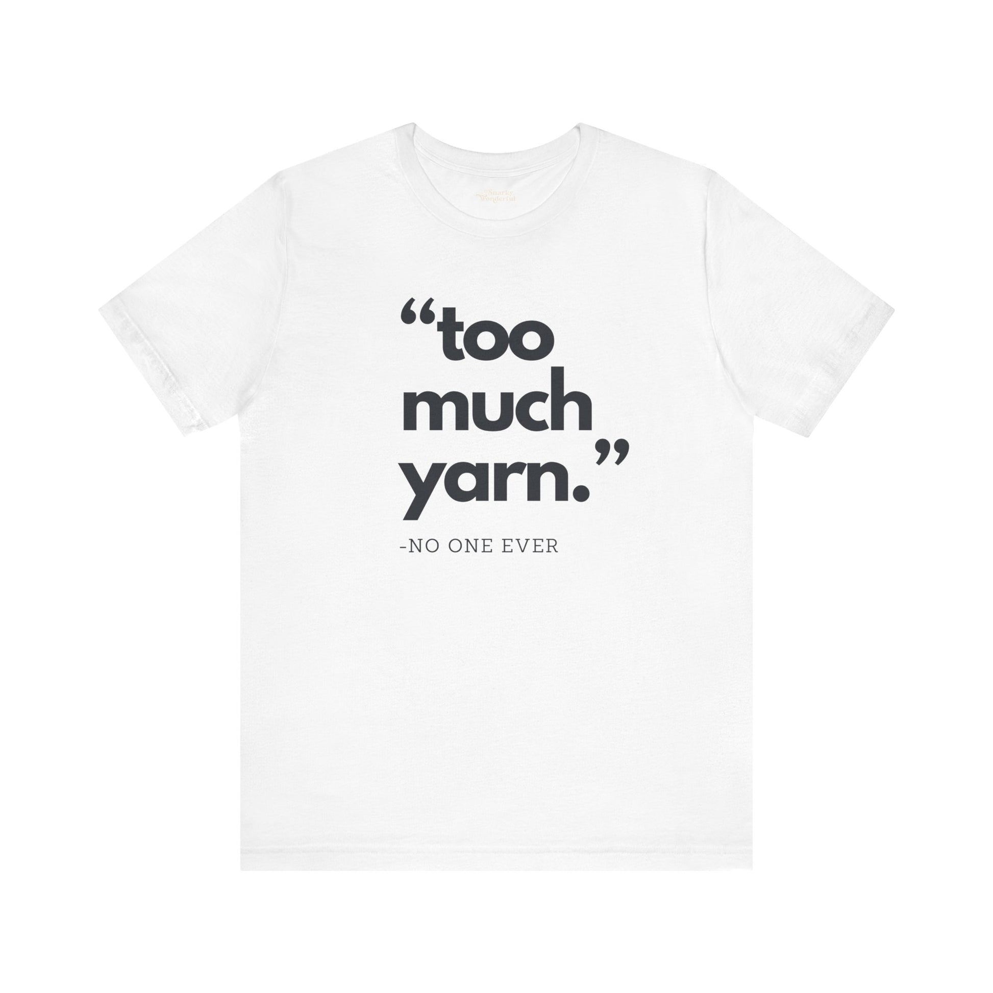 Celebrate your yarn obsession with our "Too Much Yarn" t-shirt - because let’s face it, there’s no such thing as too much yarn! This playful and witty tee is perfect for knitters and crocheters who can’t resist adding another skein (or ten) to their ever-growing collection.