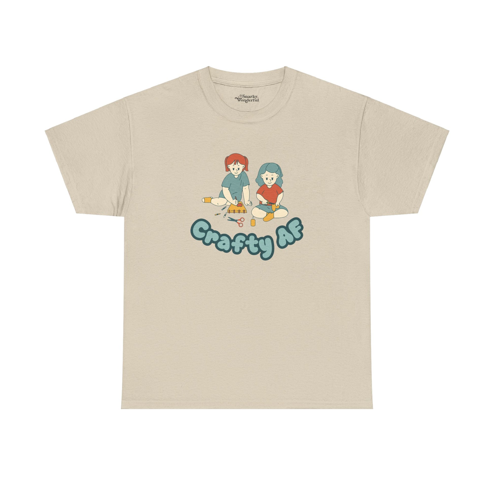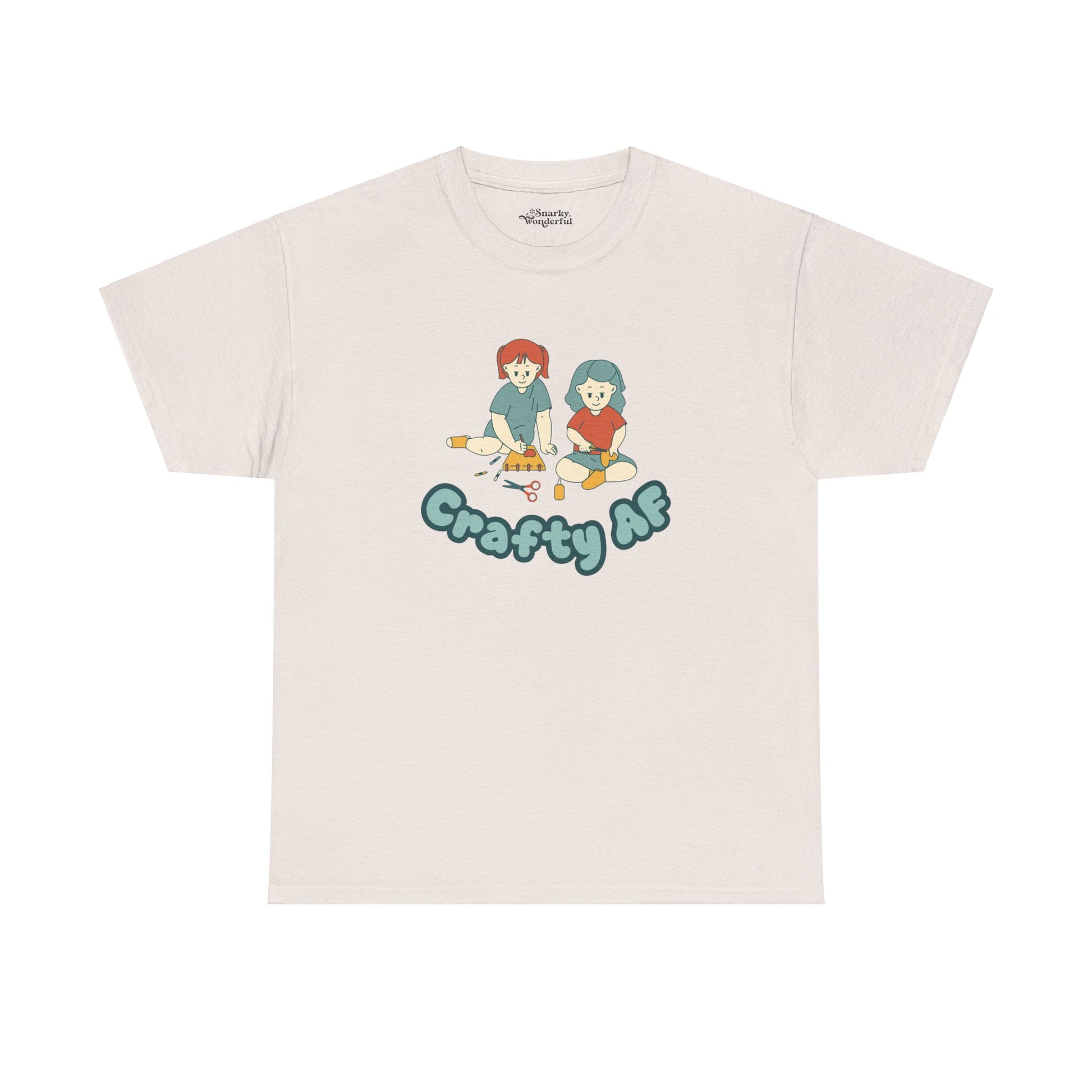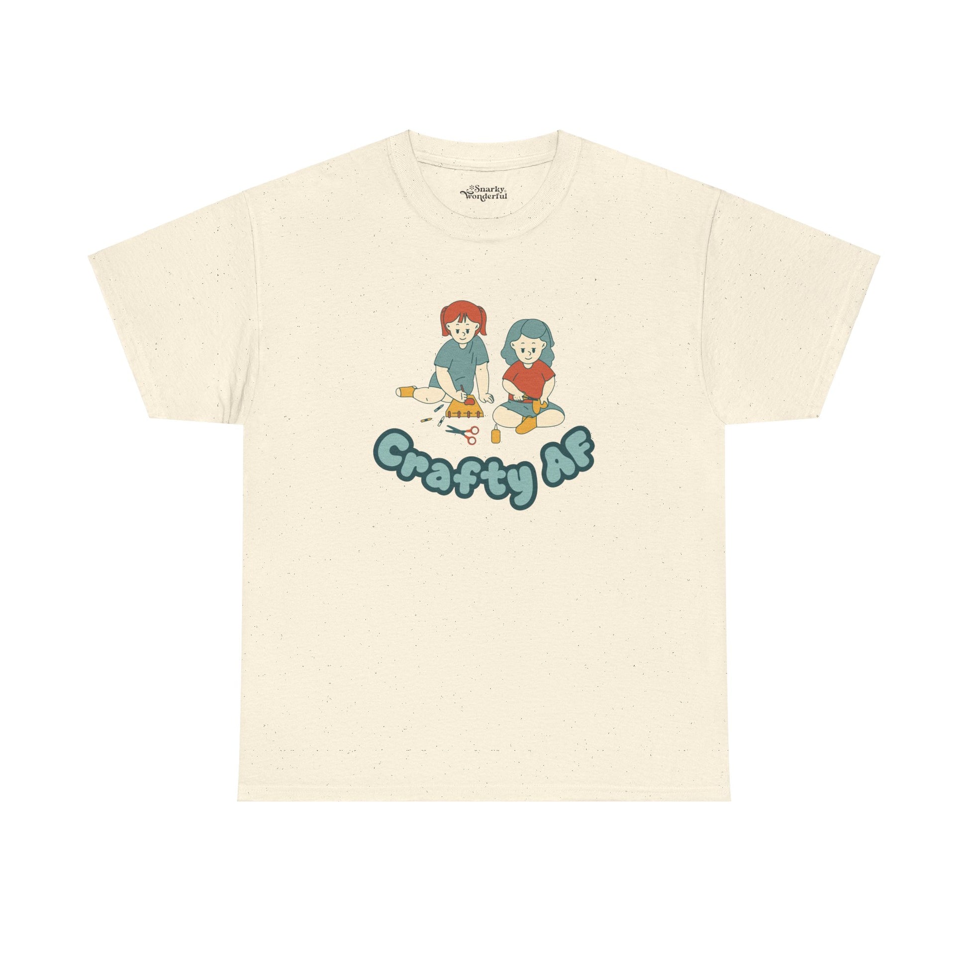 For the lifelong makers, our 'Crafty AF' tee is here to show off your well-earned crafting skills. With a vintage-inspired design of kids getting crafty, it’s perfect for those who embrace creativity without hesitation.