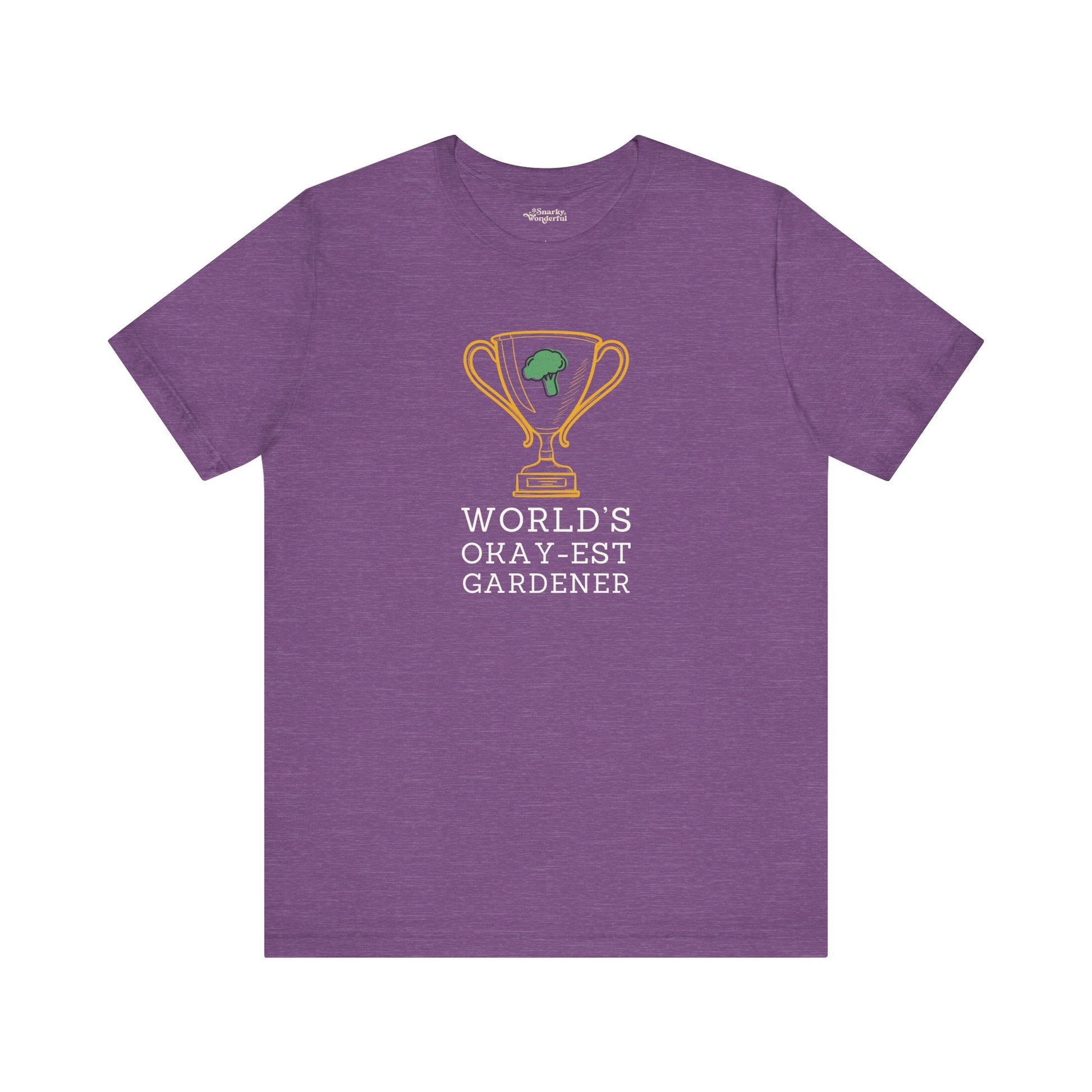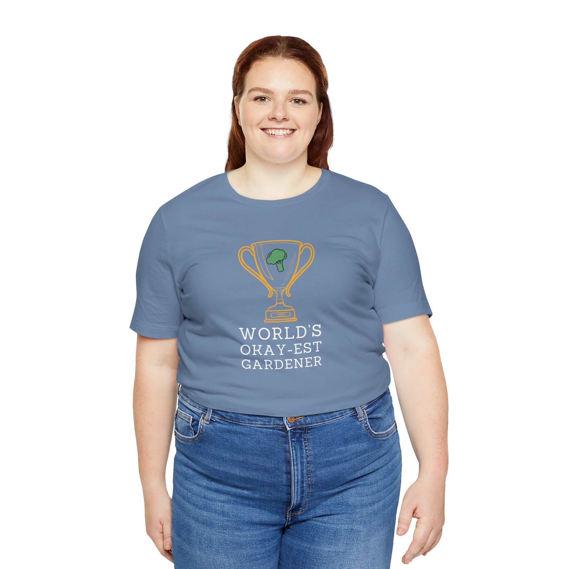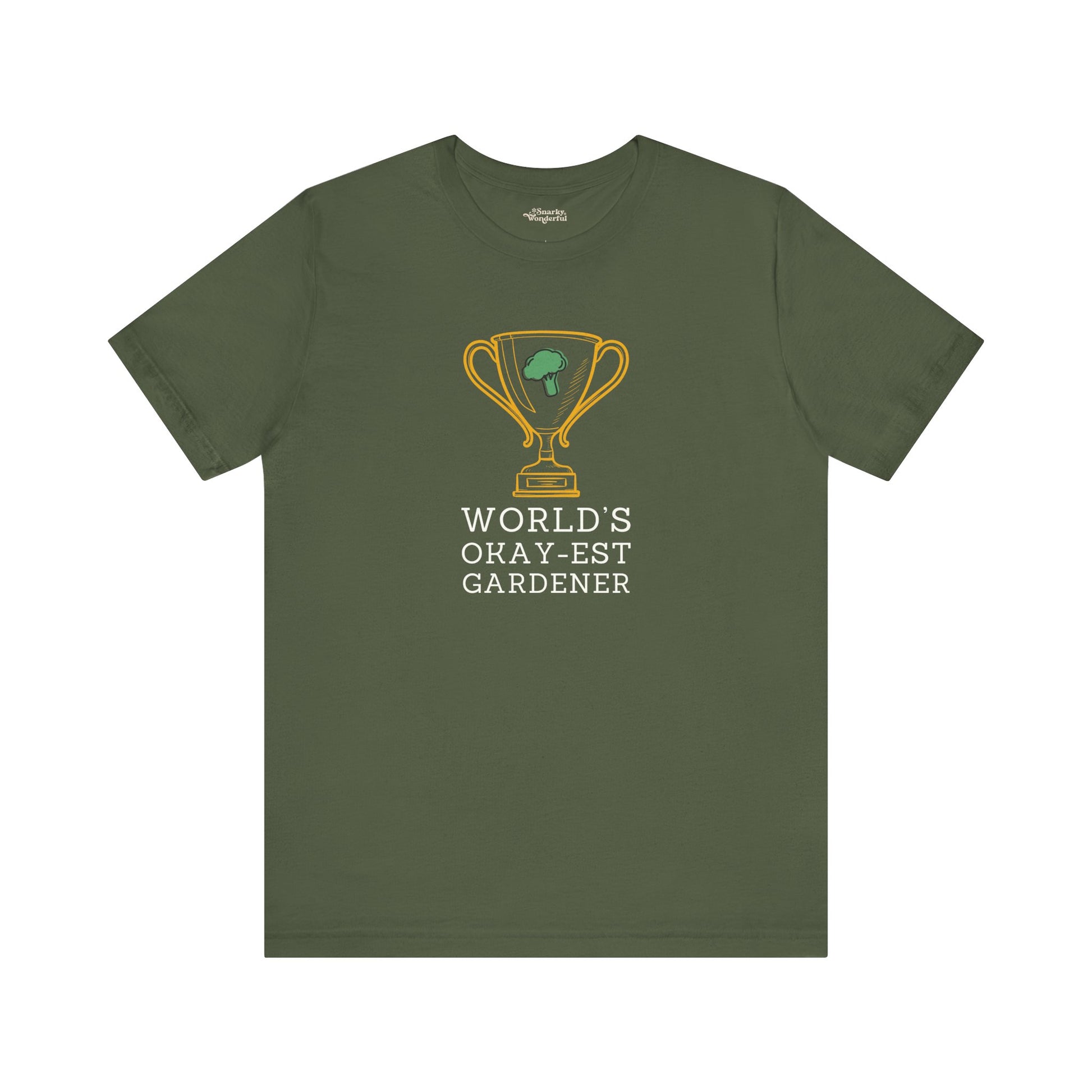 Embrace your perfectly imperfect gardening skills with our "World's Okay-est Gardener" t-shirt! This hilarious and relatable tee is the ultimate tribute to all the gardening enthusiasts who love their plants, even if they don’t always have a green thumb.